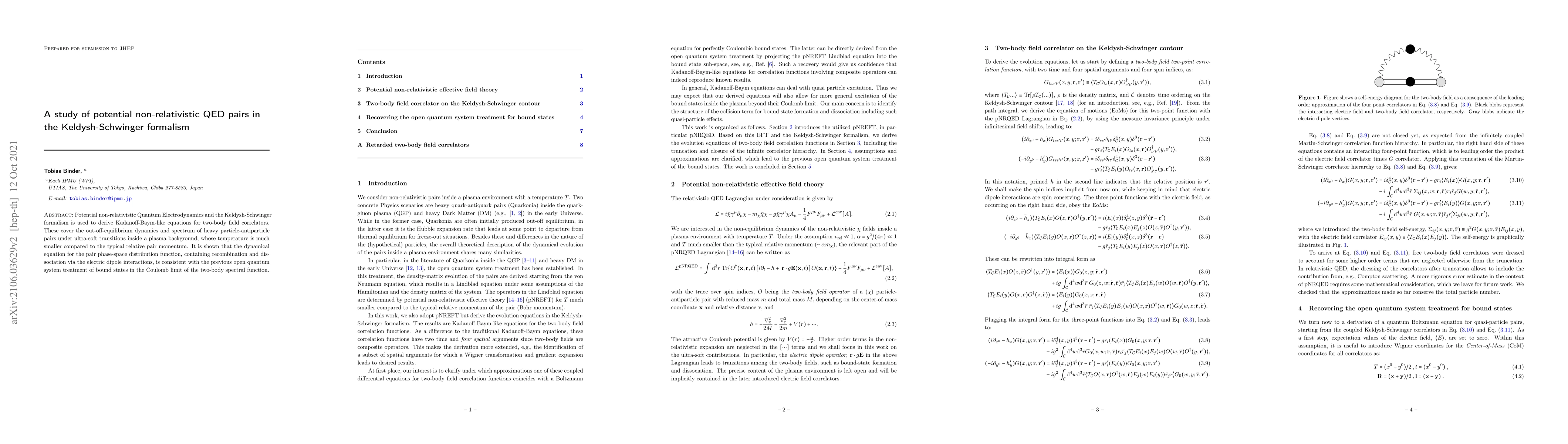 This study employs potential non-relativistic Quantum Electrodynamics and the Keldysh-Schwinger formalism to derive Kadanoff-Baym-like equations for two-body field correlators, analyzing the out-of-equilibrium dynamics and spectrum of heavy particle-antiparticle pairs in a cold plasma. The derived dynamical equation for the pair phase-space distribution function aligns with previous open quantum system treatments for bound states in the Coulomb limit.