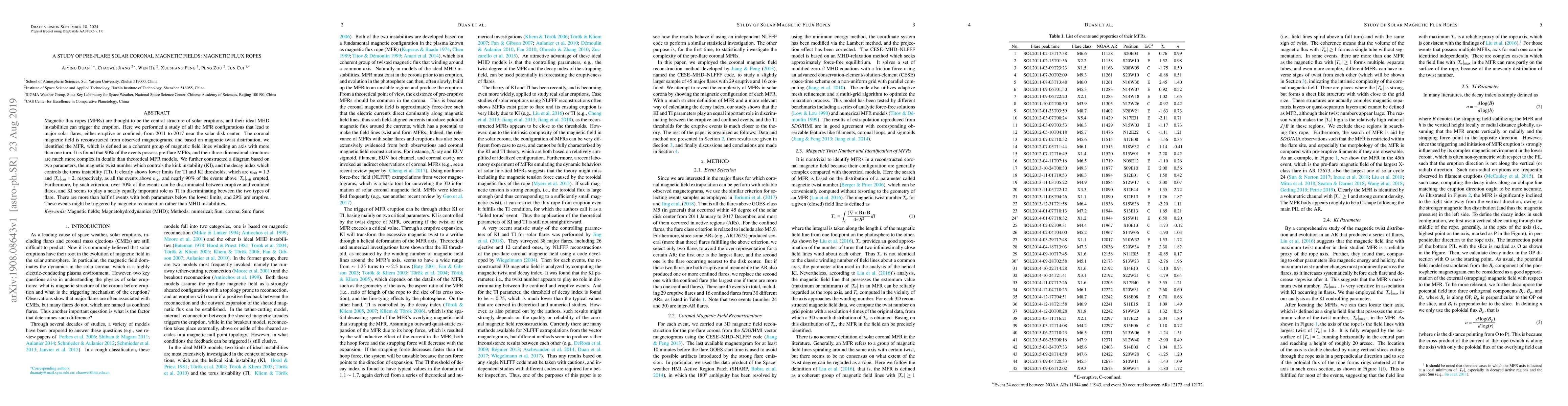 Magnetic flux ropes (MFRs) are thought to be the central structure of solar eruptions, and their ideal MHD instabilities can trigger the eruption. Here we performed a study of all the MFR configurations that lead to major solar flares, either eruptive or confined, from 2011 to 2017 near the solar disk center. The coronal magnetic field is reconstructed from observed magnetograms, and based on magnetic twist distribution, we identified the MFR, which is defined as a coherent group of magnetic field lines winding an axis with more than one turn. It is found that 90% of the events possess pre-flare MFRs, and their three-dimensional structures are much more complex in details than theoretical MFR models. We further constructed a diagram based on two parameters, the magnetic twist number which controls the kink instability (KI), and the decay index which controls the torus instability (TI). It clearly shows lower limits for TI and KI thresholds, which are $n_{\rm crit} = 1.3$ and $|T_w|_{\rm crit} = 2$, respectively, as all the events above $n_{\rm crit}$ and nearly 90% of the events above $|T_w|_{\rm crit}$ erupted. Furthermore, by such criterion, over 70% of the events can be discriminated between eruptive and confined flares, and KI seems to play a nearly equally important role as TI in discriminating between the two types of flare. There are more than half of events with both parameters below the lower limits, and 29% are eruptive. These events might be triggered by magnetic reconnection rather than MHD instabilities.