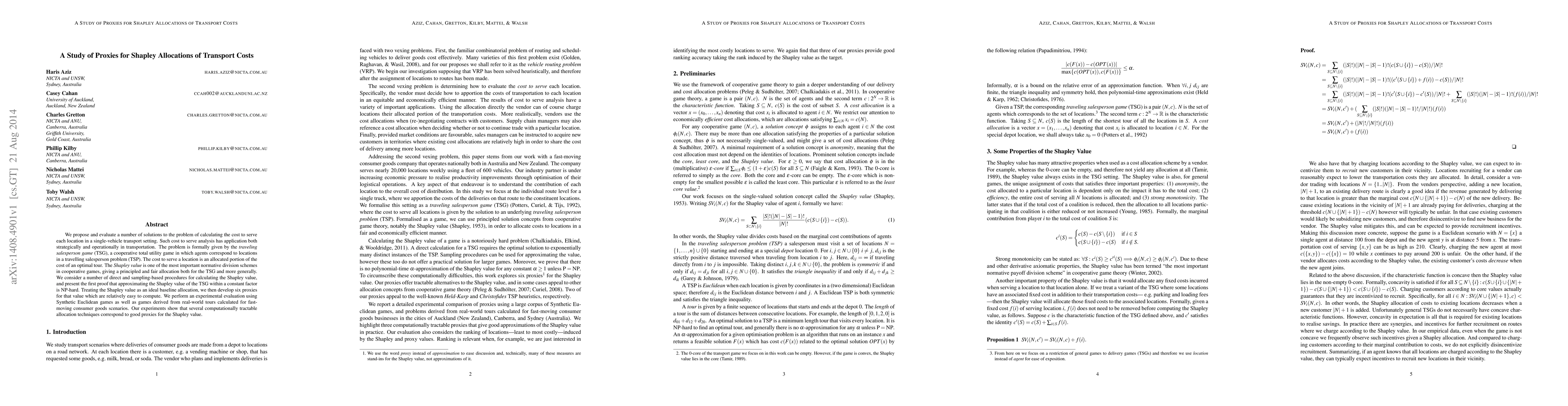 We propose and evaluate a number of solutions to the problem of calculating the cost to serve each location in a single-vehicle transport setting. Such cost to serve analysis has application both strategically and operationally in transportation. The problem is formally given by the traveling salesperson game (TSG), a cooperative total utility game in which agents correspond to locations in a traveling salesperson problem (TSP). The cost to serve a location is an allocated portion of the cost of an optimal tour. The Shapley value is one of the most important normative division schemes in cooperative games, giving a principled and fair allocation both for the TSG and more generally. We consider a number of direct and sampling-based procedures for calculating the Shapley value, and present the first proof that approximating the Shapley value of the TSG within a constant factor is NP-hard. Treating the Shapley value as an ideal baseline allocation, we then develop six proxies for that value which are relatively easy to compute. We perform an experimental evaluation using Synthetic Euclidean games as well as games derived from real-world tours calculated for fast-moving consumer goods scenarios. Our experiments show that several computationally tractable allocation techniques correspond to good proxies for the Shapley value.