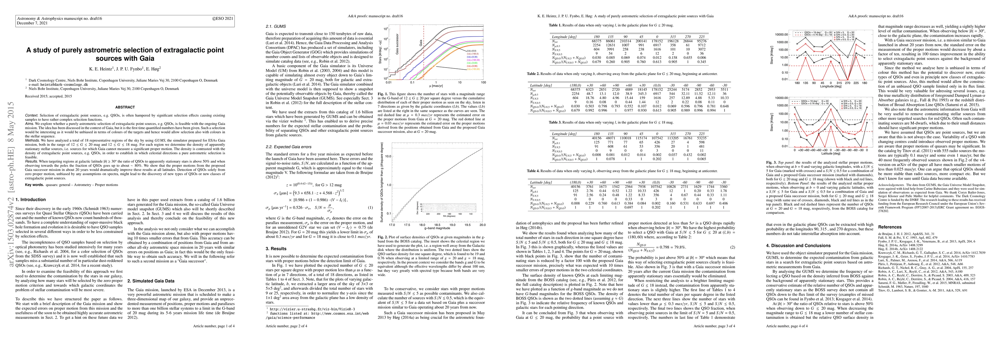 Selection of extragalactic point sources, e.g. QSOs, is often hampered by significant selection effects causing existing samples to have rather complex selection functions. We explore whether a purely astrometric selection of extragalactic point sources, e.g. QSOs, is feasible with the ongoing Gaia mission. Such a selection would be interesting as it would be unbiased in terms of colours of the targets and hence would allow selection also with colours in the stellar sequence. We have analyzed a total of 18 representative regions of the sky by using GUMS, the simulator prepared for ESAs Gaia mission, both in the range of $12\le G \le 20$ mag and $12\le G \le 18$ mag. For each region we determine the density of apparently stationary stellar sources, i.e. sources for which Gaia cannot measure a significant proper motion. The density is contrasted with the density of extragalactic point sources, e.g. QSOs, in order to establish in which celestial directions a pure astrometric selection is feasible. When targeting regions at galactic latitude $|b| \ge 30^\mathrm{o}$ the ratio of QSOs to apparently stationary stars is above 50\% and when observing towards the poles the fraction of QSOs goes up to about $\sim80$\%. We show that the proper motions from the proposed Gaia successor mission in about 20 years would dramatically improve these results at all latitudes. Detection of QSOs solely from zero proper motion, unbiased by any assumptions on spectra, might lead to the discovery of new types of QSOs or new classes of extragalactic point sources.