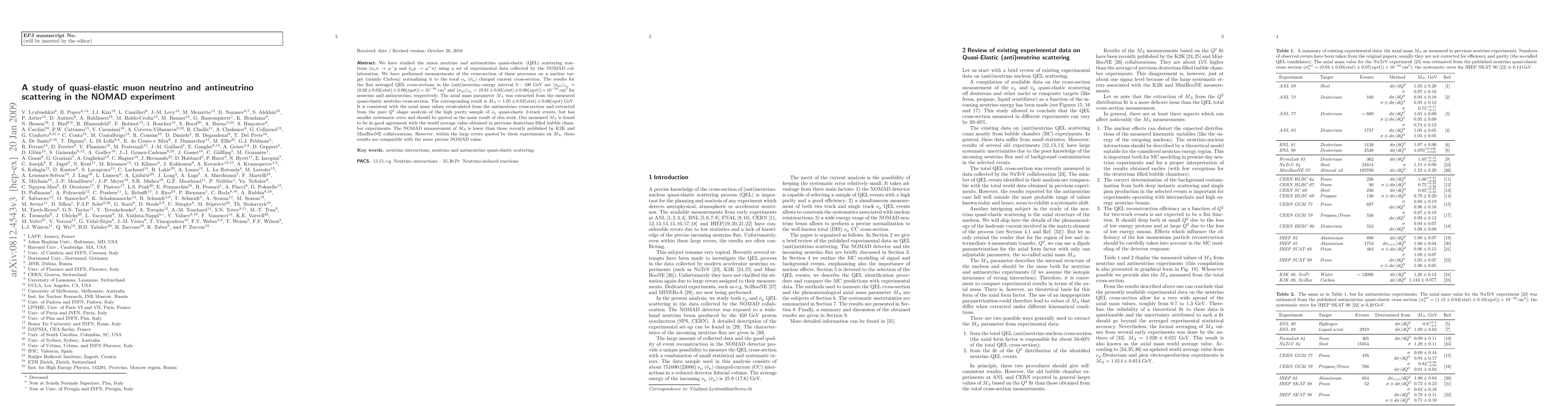 The NOMAD experiment measured the quasi-elastic muon neutrino and antineutrino scattering cross-sections on a carbon target, finding $\sigma^{qel}_{\nu_\mu} = (0.92 \pm 0.02 \pm 0.06) \times 10^{-38} \text{cm}^2$ and $\sigma^{qel}_{\bar{\nu}_\mu} = (0.81 \pm 0.05 \pm 0.08) \times 10^{-38} \text{cm}^2$. The extracted axial mass parameter $M_A$ is $1.05 \pm 0.02 \pm 0.06 \text{GeV}$, consistent with previous deuterium bubble chamber results.