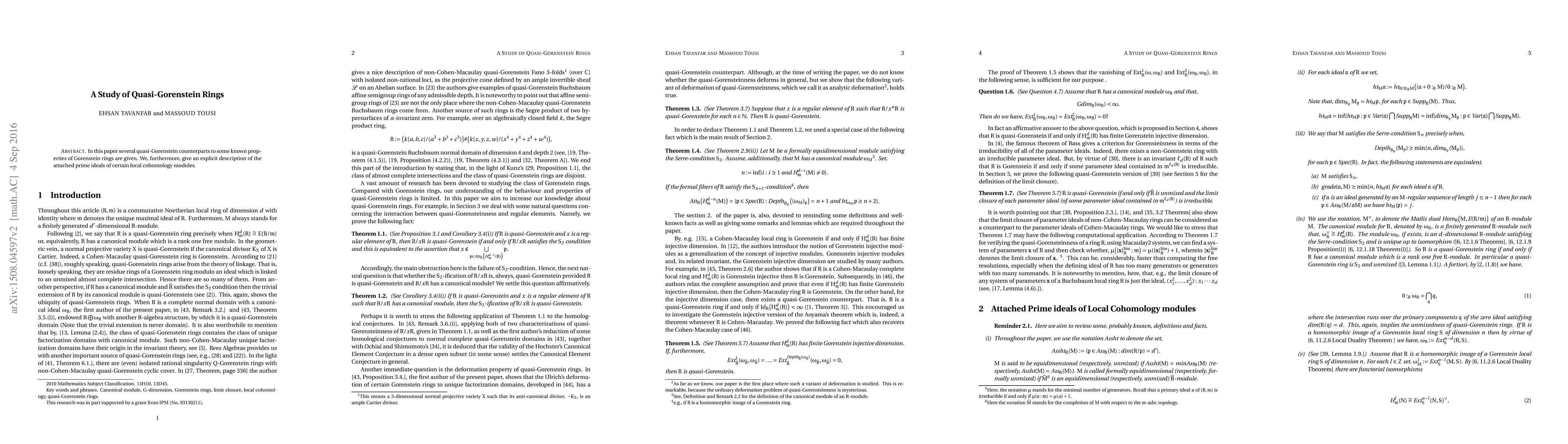 This paper explores quasi-Gorenstein rings by detailing their properties analogous to those of Gorenstein rings, and provides a clear account of the prime ideals associated with specific local cohomology modules.