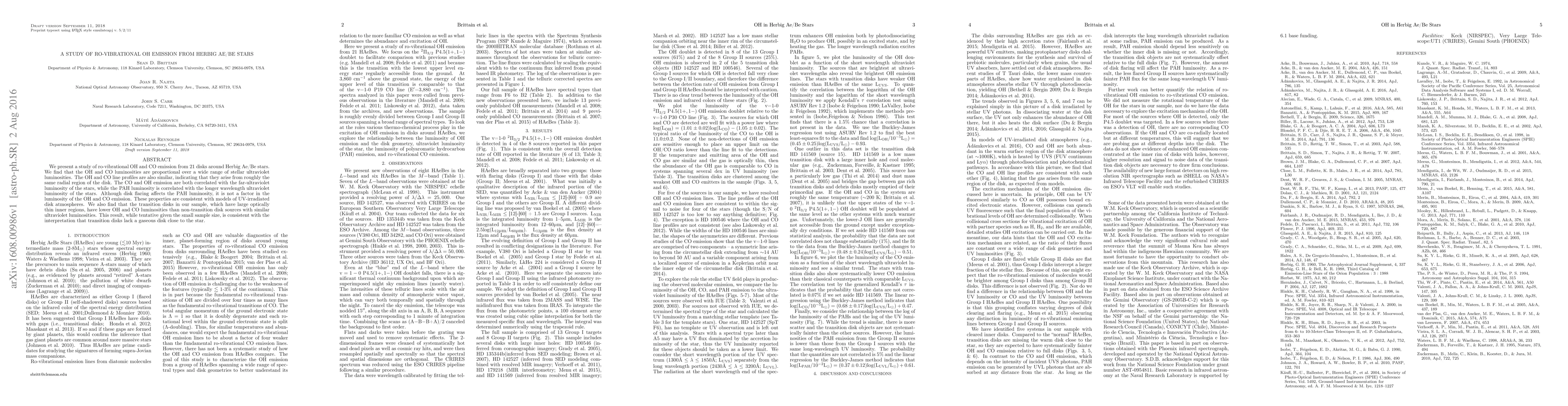 A study of 21 Herbig Ae/Be stars found that OH and CO emission is correlated with far-ultraviolet luminosity and arises from a similar radial region in the disk, suggesting models of UV-irradiated disk atmospheres.