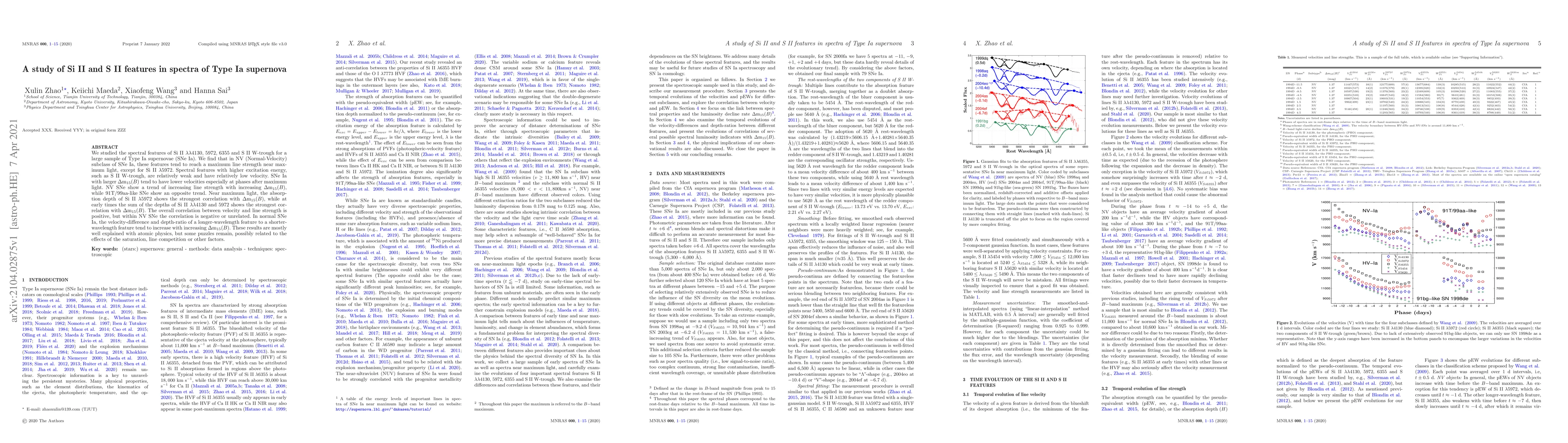 We studied the spectral features of Si II $\lambda\lambda$4130, 5972, 6355 and S II W-trough for a large sample of Type Ia supernovae (SNe Ia). We find that in NV (Normal-Velocity) subclass of SNe Ia, these features tend to reach a maximum line strength near maximum light, except for Si II $\lambda$5972. Spectral features with higher excitation energy, such as S II W-trough, are relatively weak and have relatively low velocity. SNe Ia with larger $\Delta$m$_{15}$($B$) tend to have lower velocities especially at phases after maximum light. NV SNe show a trend of increasing line strength with increasing $\Delta$m$_{15}$($B$), while 91T/99aa-like SNe show an opposite trend. Near maximum light, the absorption depth of Si II $\lambda$5972 shows the strongest correlation with $\Delta$m$_{15}$($B$), while at early times the sum of the depths of Si II $\lambda\lambda$4130 and 5972 shows the strongest correlation with $\Delta$m$_{15}$($B$). The overall correlation between velocity and line strength is positive, but within NV SNe the correlation is negative or unrelated. In normal SNe Ia, the velocity-difference and depth-ratio of a longer-wavelength feature to a shorter-wavelength feature tend to increase with increasing $\Delta$m$_{15}$($B$). These results are mostly well explained with atomic physics, but some puzzles remain, possibly related to the effects of the saturation, line competition or other factors.