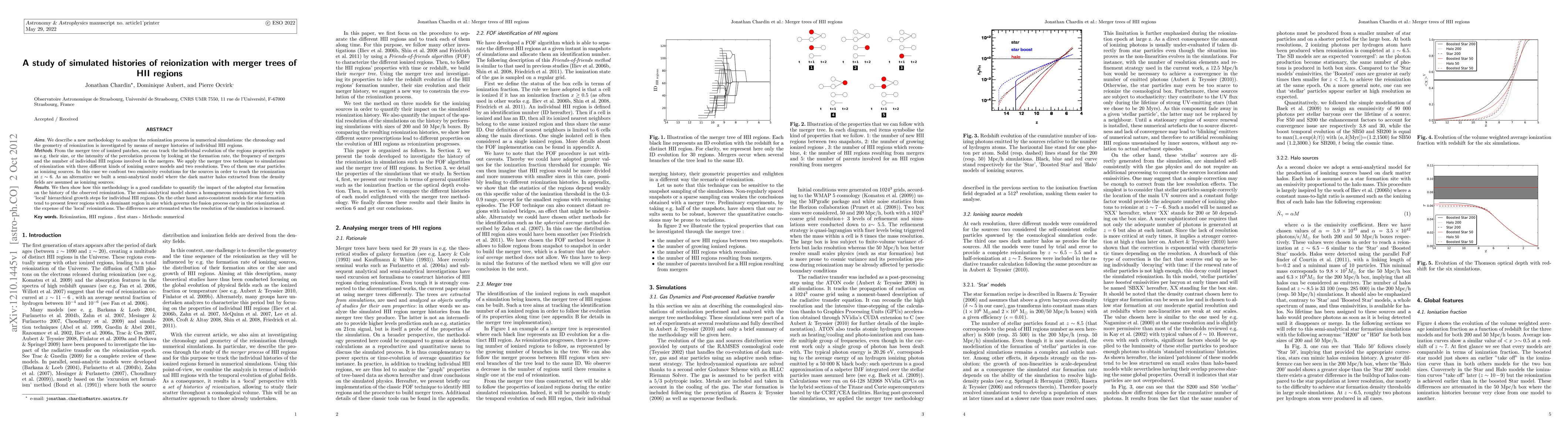 We describe a new methodology to analyze the reionization process in numerical simulations: the chronology and the geometry of reionization is investigated by means of merger histories of individual HII regions. From the merger tree of ionized patches, one can track the individual evolution of the regions properties such as e.g. their size, or the intensity of the percolation process by looking at the formation rate, the frequency of mergers and the number of individual HII regions involved in the mergers. We apply the merger tree technique to simulations of reionization with three different kinds of ionizing source models and two resolutions. Two of them use star particles as ionizing sources. In this case we confront two emissivity evolutions for the sources in order to reach the reionization at z ~ 6. As an alternative we built a semi-analytical model where the dark matter halos extracted from the density fields are assumed as ionizing sources. We then show how this methodology is a good candidate to quantify the impact of the adopted star formation on the history of the observed reionization. The semi-analytical model shows a homogeneous reionization history with 'local' hierarchical growth steps for individual HII regions. On the other hand auto-consistent models for star formation tend to present fewer regions with a dominant region in size which governs the fusion process early in the reionization at the expense of the 'local' reionizations. The differences are attenuated when the resolution of the simulation is increased.