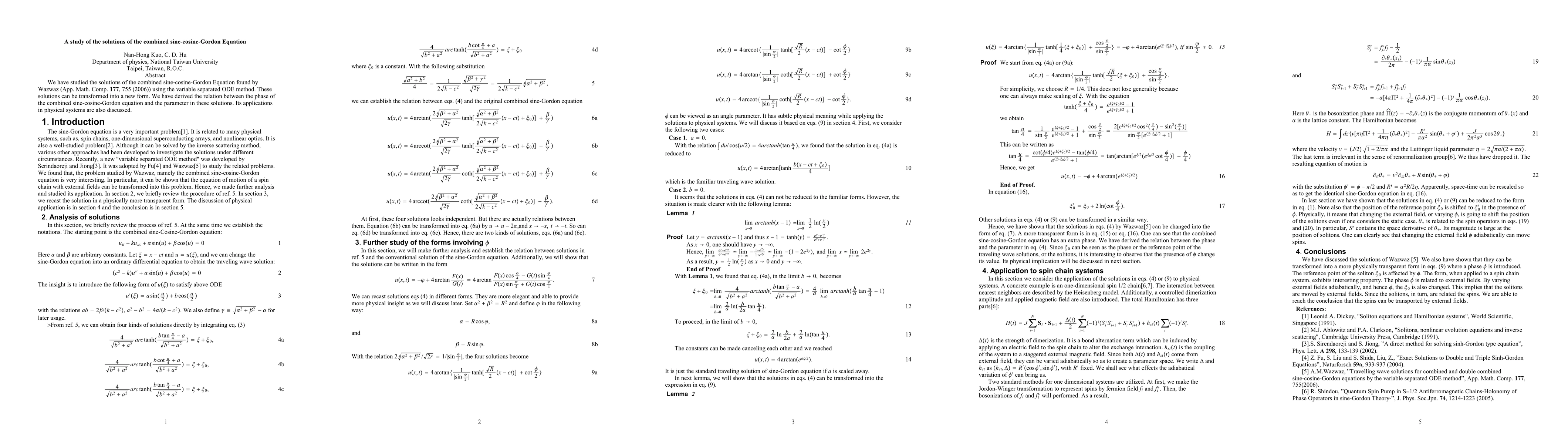 We have studied the solutions of the combined sine-cosine-Gordon Equation found by Wazwaz (App. Math. Comp. 177, 755 (2006)) using the variable separated ODE method. These solutions can be transformed into a new form. We have derived the relation between the phase of the combined sine-cosine-Gordon equation and the parameter in these solutions. Its applications in physical systems are also discussed