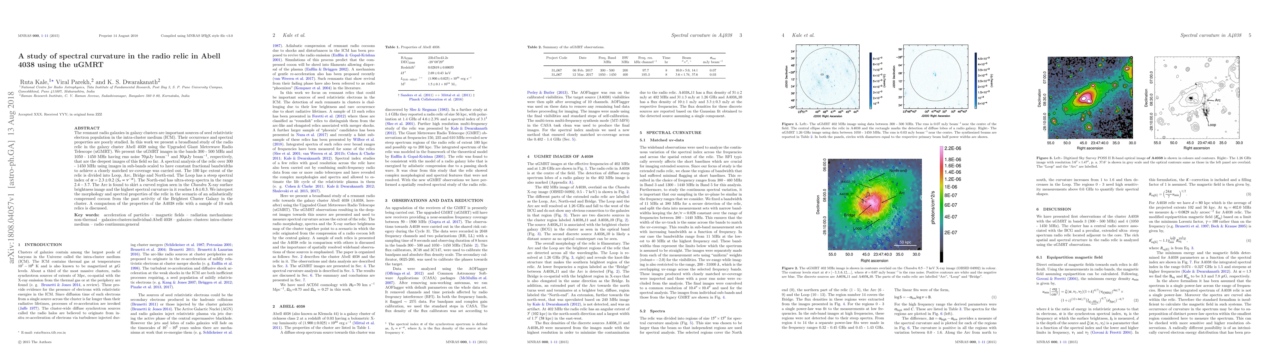 The remnant radio galaxies in galaxy clusters are important sources of seed relativistic electron population in the intra-cluster medium (ICM). Their occurrence and spectral properties are poorly studied. In this work we present a broadband study of the radio relic in the galaxy cluster Abell 4038 using the Upgraded Giant Metrewave Radio Telescope (uGMRT). We present the uGMRT images in the bands 300 - 500 MHz and 1050 - 1450 MHz having rms noise $70\,\mu$Jy beam$^{-1}$ and $30\,\mu$Jy beam$^{-1}$, respectively, that are the deepest images of this field so far. A spectral analysis of the relic over 300 - 1450 MHz using images in sub-bands scaled to have constant fractional bandwidths to achieve a closely matched uv-coverage was carried out. The 100 kpc extent of the relic is divided into Loop, Arc, Bridge and North-end. The Loop has a steep spectral index of $\alpha=2.3\pm0.2$ ($S_{\nu}\propto\nu^{-\alpha}$). The North-end has ultra-steep spectra in the range $2.4 - 3.7$. The Arc is found to skirt a curved region seen in the \emph{Chandra} X-ray surface brightness image and the highest spectral curvature in it reaches $1.6\pm0.3$. We interpret the morphology and spectral properties of the relic in the scenario of an adiabatically compressed cocoon from the past activity of the Brightest Cluster Galaxy in the cluster. A comparison of the properties of the A4038 relic with a sample of 10 such relics is discussed.