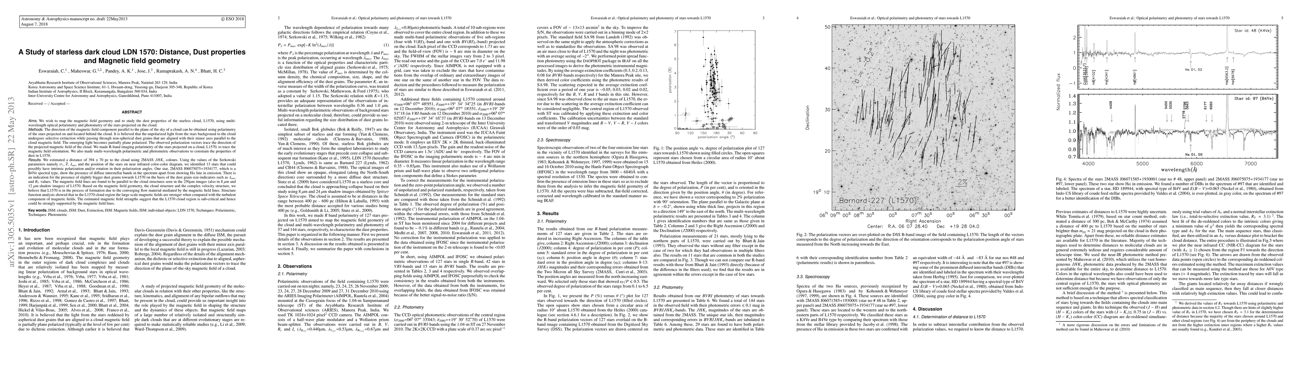 We wish to map the magnetic field geometry and to study the dust properties of the starless cloud, L1570, using multi-wavelength optical polarimetry and photometry of the stars projected on the cloud. We made R-band imaging polarimetry of the stars projected on a cloud, L1570, to trace the magnetic field orientation. We also made multi-wavelength polarimetric and photometric observations to constrain the properties of dust in L1570. We estimated a distance of 394 +/- 70 pc to the cloud using 2MASS JHKs colours. Using the values of the Serkowski parameters namely $\sigma_{1}$, $\bar \epsilon$, {\lambda}max and the position of the stars on near infrared color-color diagram, we identified 13 stars that could possibly have intrinsic polarization and/or rotation in their polarization angles. One star, 2MASS J06075075+1934177, which is a B4Ve spectral type, show the presence of diffuse interstellar bands in the spectrum apart from showing H{\alpha} line in emission. There is an indication for the presence of slightly bigger dust grains towards L1570 on the basis of the dust grain size-indicators such as {\lambda}max and Rv values. The magnetic field lines are found to be parallel to the cloud structures seen in the 250{\mu}m images (also in 8{\mu}m and 12{\mu}m shadow images) of L1570. Based on the magnetic field geometry, the cloud structure and the complex velocity structure, we believe that L1570 is in the process of formation due to the converging flow material mediated by the magnetic field lines. Structure function analysis showed that in the L1570 cloud region the large scale magnetic fields are stronger when compared with the turbulent component of magnetic fields. The estimated magnetic field strengths suggest that the L1570 cloud region is sub-critical and hence could be strongly supported by the magnetic field lines.
