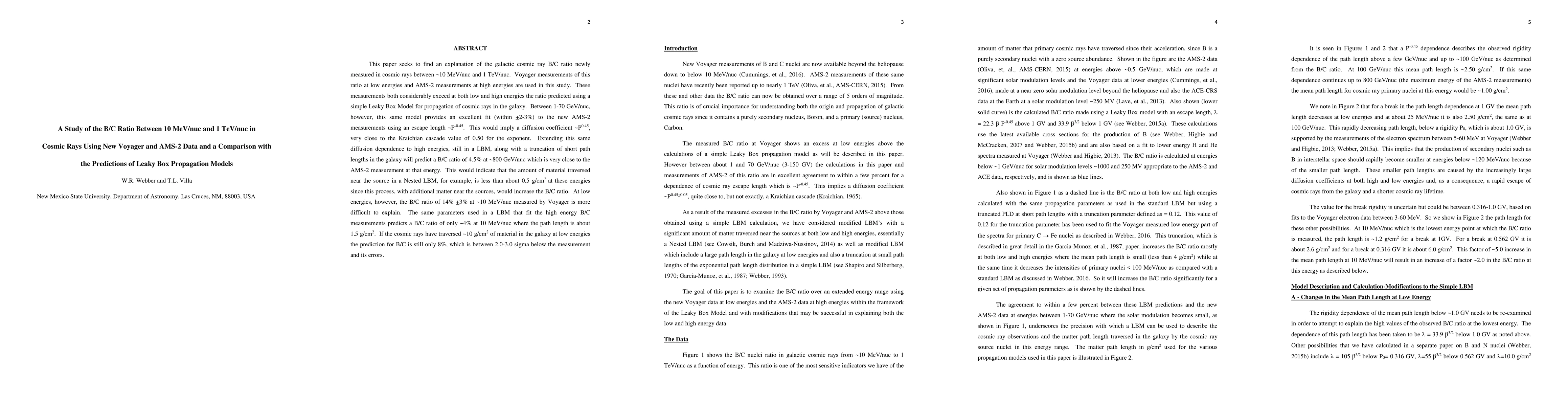 This paper investigates the B/C ratio in cosmic rays between 10 MeV/nuc and 1 TeV/nuc using Voyager and AMS-2 data, finding discrepancies with predictions from Leaky Box Propagation Models. While the model fits high-energy data well, it struggles to explain the higher B/C ratio observed at low energies.