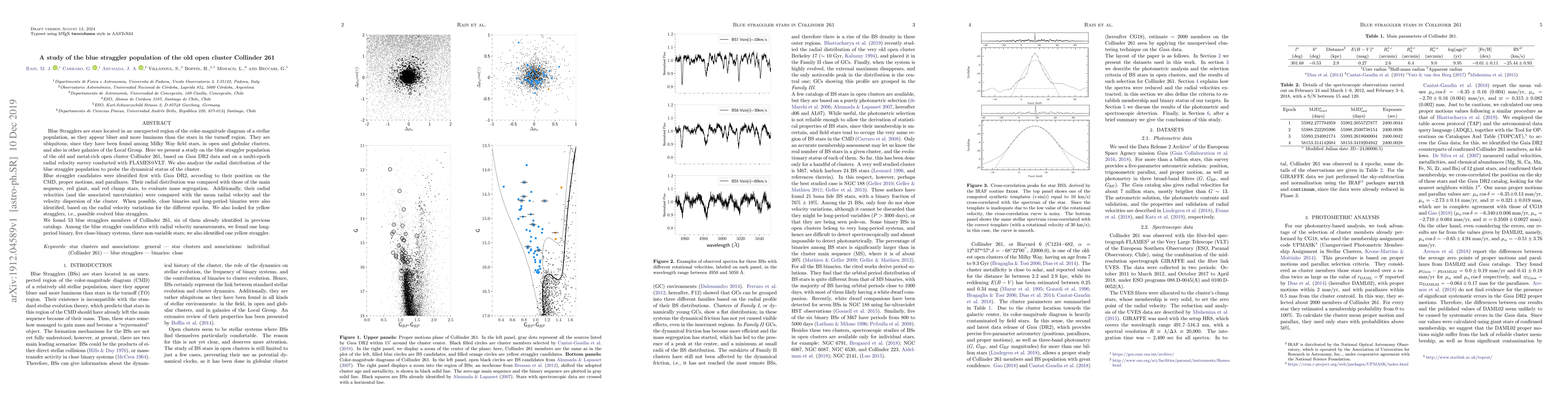 This study investigates the blue straggler population in the old open cluster Collinder 261 using Gaia DR2 data and FLAMES@VLT radial velocity surveys. The research identified 53 blue stragglers, including six previously cataloged, and analyzed their radial distribution and binary systems for dynamical insights.