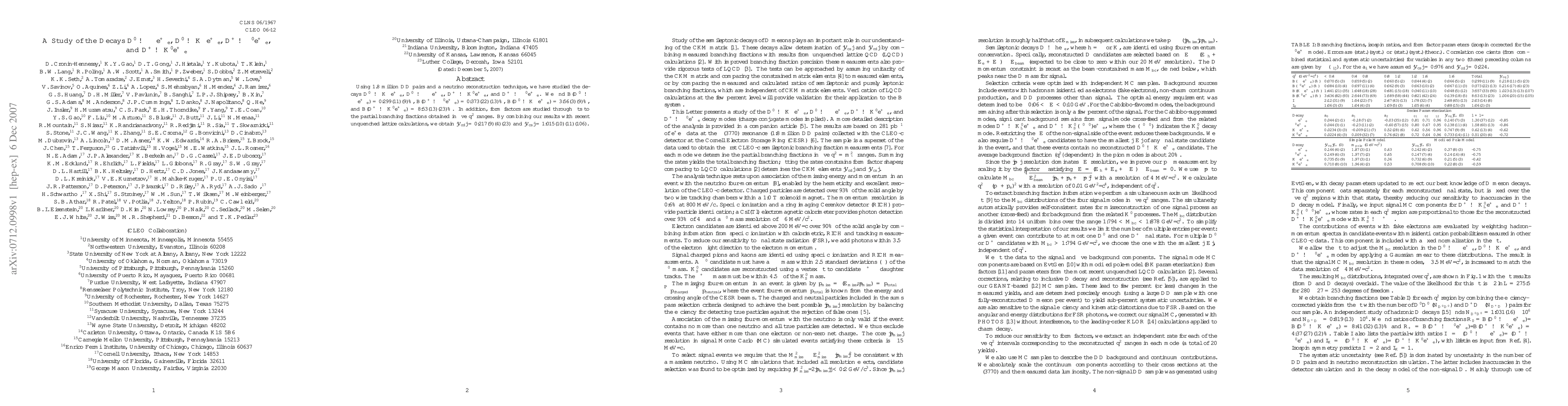 This study investigates the decay rates of several D meson decays using 1.8 million DDbar pairs, finding branching fractions for D^0 -> pi^- e^+ nu_e, D^+ -> pi^0 e^+ nu_e, D^0 -> K^- e^+ nu_e, and D^+ -> Kbar^0 e^+ nu_e. The results also provide updated values for |Vcd| and |Vcs| through comparison with lattice QCD calculations.