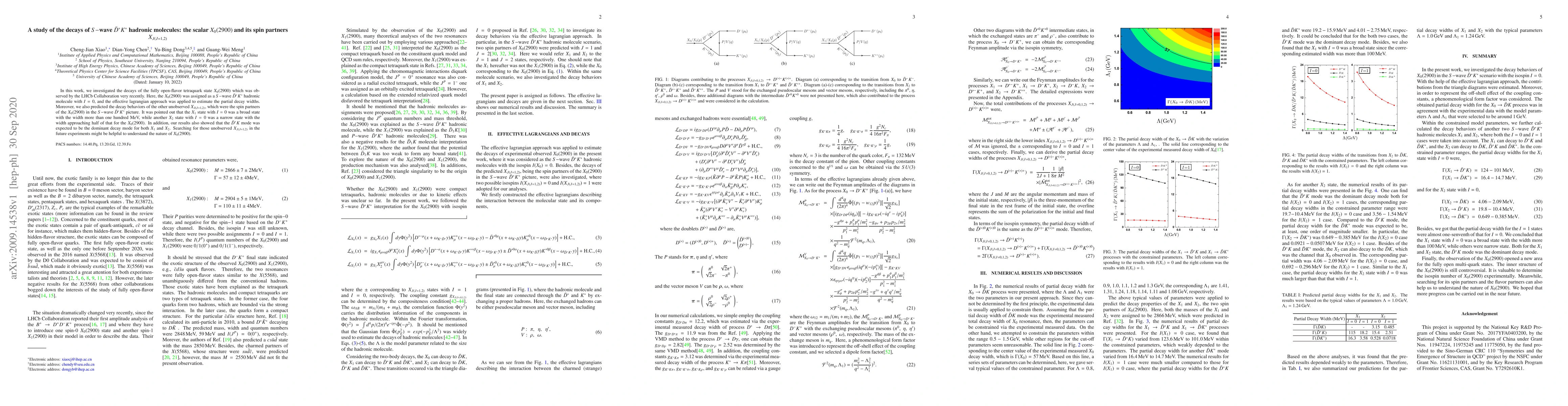 In this work, we investigated the decays of the fully open-flavor tetraquark state $X_0(2900)$ which was observed by the LHCb Collaboration very recently. Here, the $X_0(2900)$ was assigned as a $S-$wave $\bar D^\ast K^\ast$ hadronic molecule with $I=0$, and the effective lagrangian approach was applied to estimate the partial decay widths. Moreover, we also predicted the decay behaviors of the other unobserved $X_{J(J=1,2)}$, which were the spin partners of the $X_0(2900)$ in the $S-$wave $\bar D^\ast K^\ast$ picture. It was pointed out that the $X_1$ state with $I=0$ was a broad state with the width more than one hundred MeV, while another $X_2$ state with $I=0$ was a narrow state with the width approaching half of that for the $X_0(2900)$. In addition, our results also showed that the $\bar D^\ast K$ mode was expected to be the dominant decay mode for both $X_1$ and $X_2$. Searching for those unobserved $X_{J(J=1,2)}$ in the future experiments might be helpful to understand the nature of $X_0(2900)$.