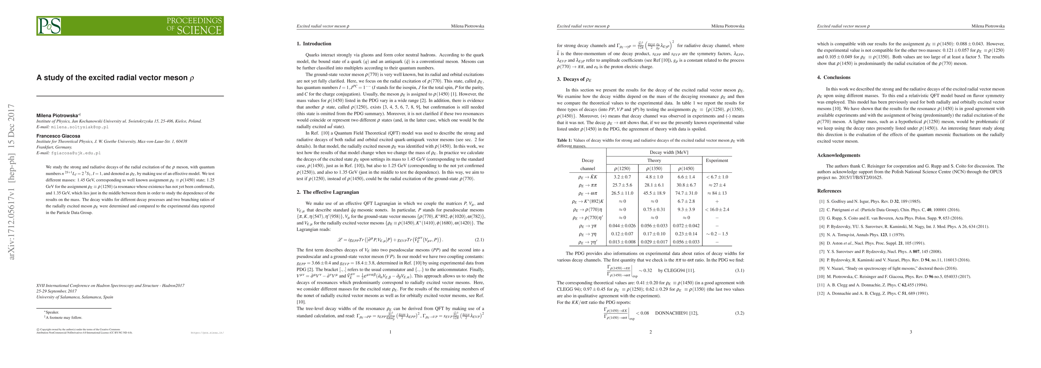 We study the strong and radiative decays of the radial excitation of the $\rho$ meson, with quantum numbers $n$ $^{2S+1}L_{J}=2$ $^{3}S_{1},$ $I=1$, and denoted as $\rho_{E}$, by making use of an effective model. We test different masses: $1.45$ GeV, corresponding to well known assignment $\rho_{E}\equiv\rho(1450)$ state; $1.25$ GeV for the assignment $\rho _{E}\equiv\rho(1250)$ (a resonance whose existence has not yet been confirmed), and $1.35$ GeV, which lies just in the middle between them in order to study the dependence of the results on the mass. The decay widths for different decay processes and two branching ratios of the radially excited meson $\rho_{E}$ were determined and compared to the experimental data reported in the Particle Data Group.
