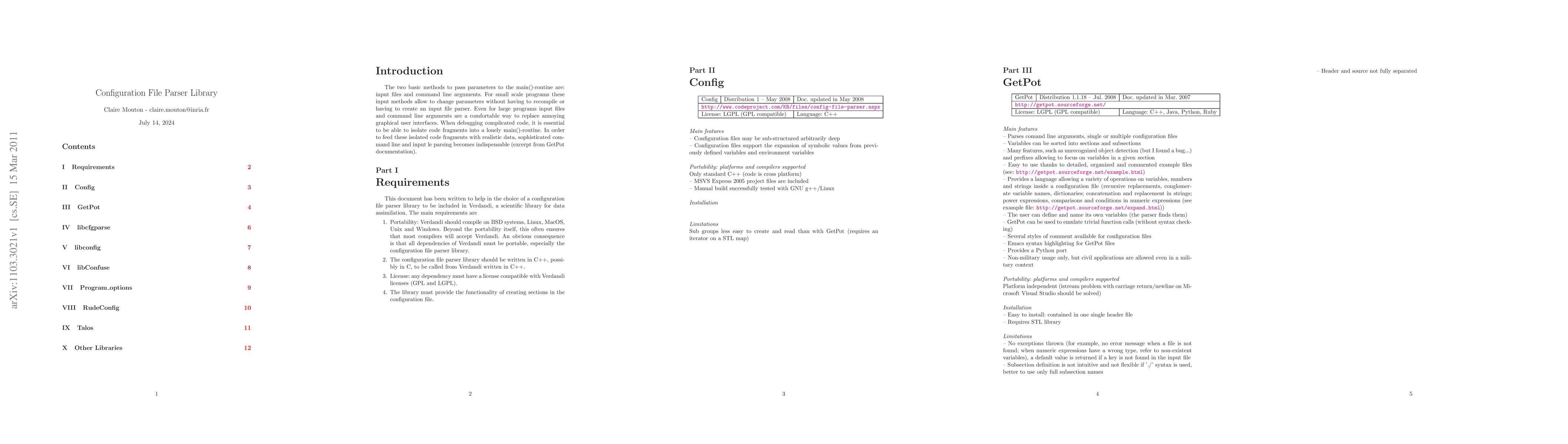 The paper presents a comparative study of various C++ libraries used for reading configuration files, analyzing their features, portability, documentation, and ease of use.