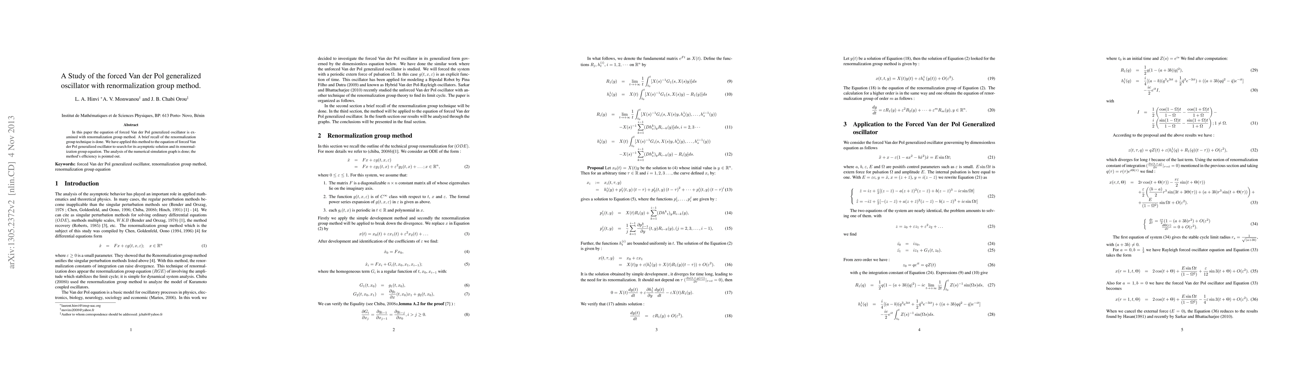 The research used the renormalization group method to analyze the forced Van der Pol generalized oscillator equation.