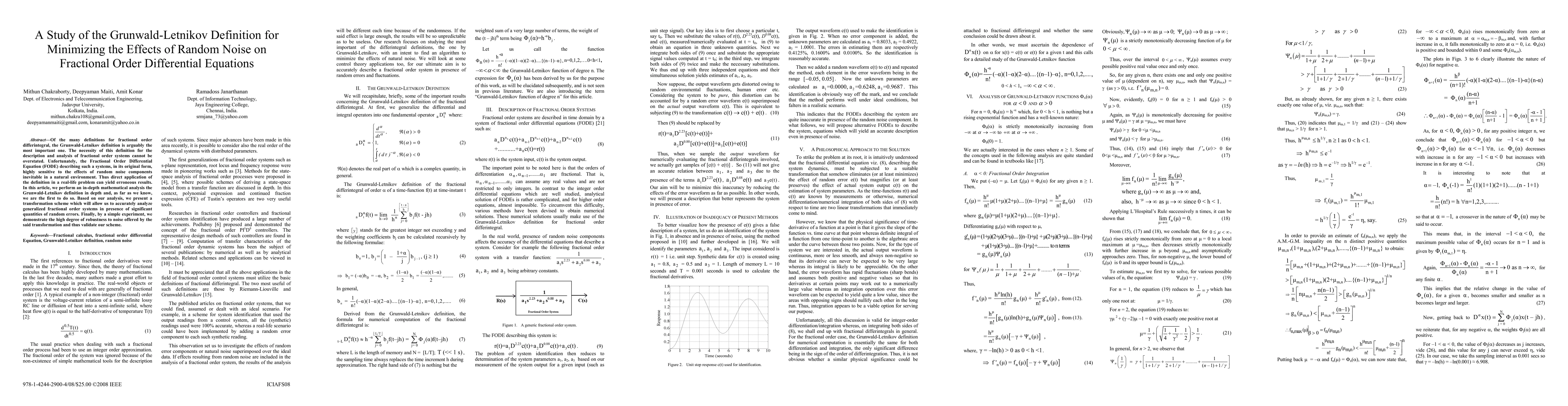 This paper investigates the Grunwald-Letnikov definition for fractional order differintegrals, highlighting its importance in analyzing fractional order systems. It proposes a transformation scheme to minimize the effects of random noise on these systems, demonstrating its robustness through an experiment.