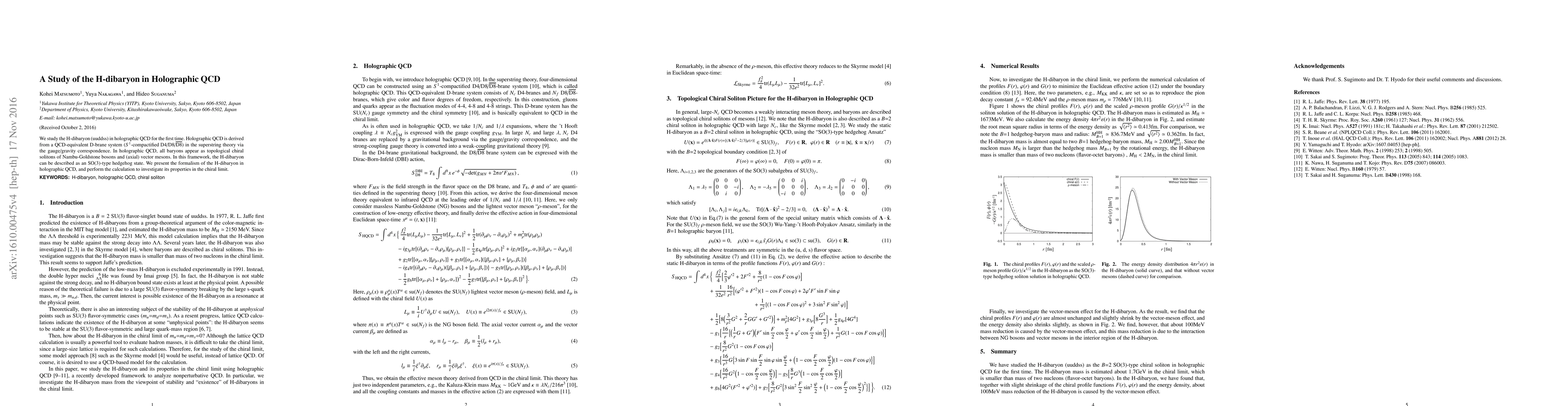 The paper presents a novel approach to studying the H-dibaryon using holographic QCD, deriving its effective action and calculating its properties as a B=2 chiral soliton.