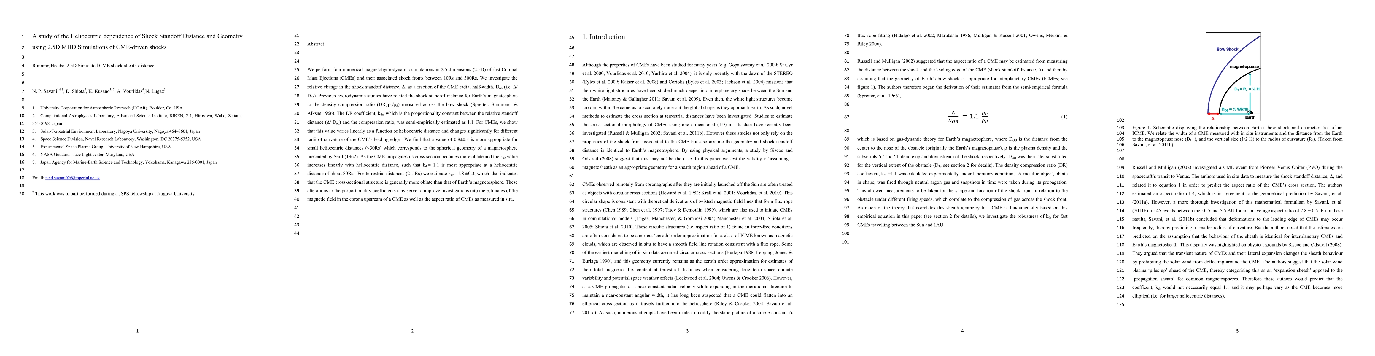 We perform four numerical magnetohydrodynamic simulations in 2.5 dimensions (2.5D) of fast Coronal Mass Ejections (CMEs) and their associated shock fronts between 10Rs and 300Rs. We investigate the relative change in the shock standoff distance, Sd, as a fraction of the CME radial half-width, Dob (i.e. Sd/Dob). Previous hydrodynamic studies have related the shock standoff distance for Earths magnetosphere to the density compression ratio (DR,Ru/Rd) measured across the bow shock (Spreiter, Summers and Alksne 1966). The DR coefficient, kdr, which is the proportionality constant between the relative standoff distance (Sd/Dob) and the compression ratio, was semi-empirically estimated as 1.1. For CMEs, we show that this value varies linearly as a function of heliocentric distance and changes significantly for different radii of curvature of the CMEs leading edge. We find that a value of 0.8+-0.1 is more appropriate for small heliocentric distances (<30Rs) which corresponds to the spherical geometry of a magnetosphere presented by Seiff (1962). As the CME propagates its cross section becomes more oblate and the kdr value increases linearly with heliocentric distance, such that kdr= 1.1 is most appropriate at a heliocentric distance of about 80Rs. For terrestrial distances (215Rs) we estimate kdr= 1.8+-0.3, which also indicates that the CME cross-sectional structure is generally more oblate than that of Earths magnetosphere. These alterations to the proportionality coefficients may serve to improve investigations into the estimates of the magnetic field in the corona upstream of a CME as well as the aspect ratio of CMEs as measured in situ.