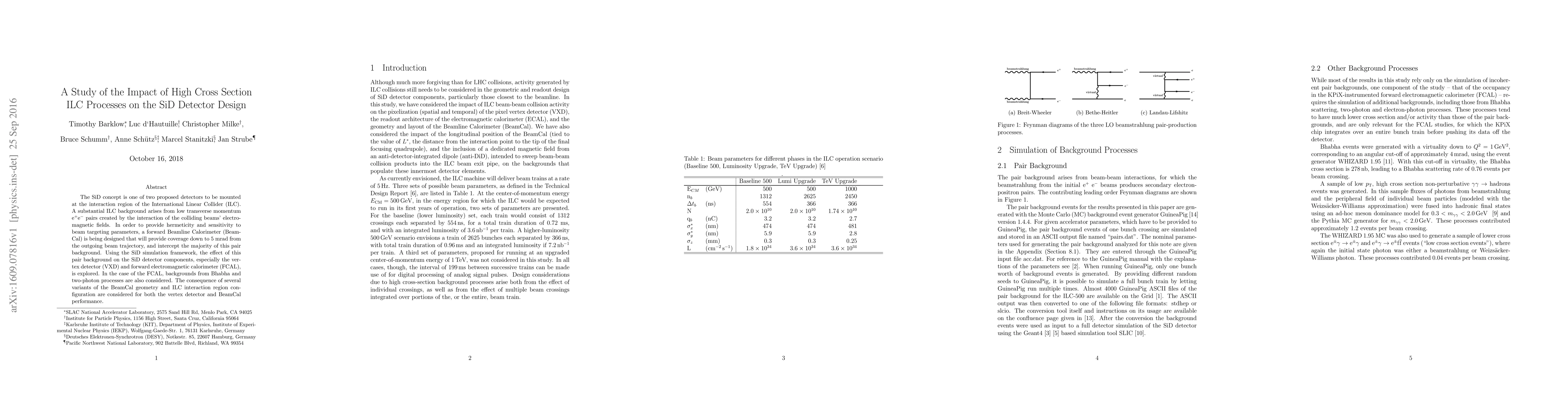 This study investigates how the high cross section processes in the International Linear Collider (ILC) impact the design of the SiD detector, particularly focusing on the effects of low transverse momentum $\mathrm{e}^{+}\mathrm{e}^{-}$ pairs on the vertex detector and forward electromagnetic calorimeter. The research also examines the influence of different BeamCal geometries on detector performance.