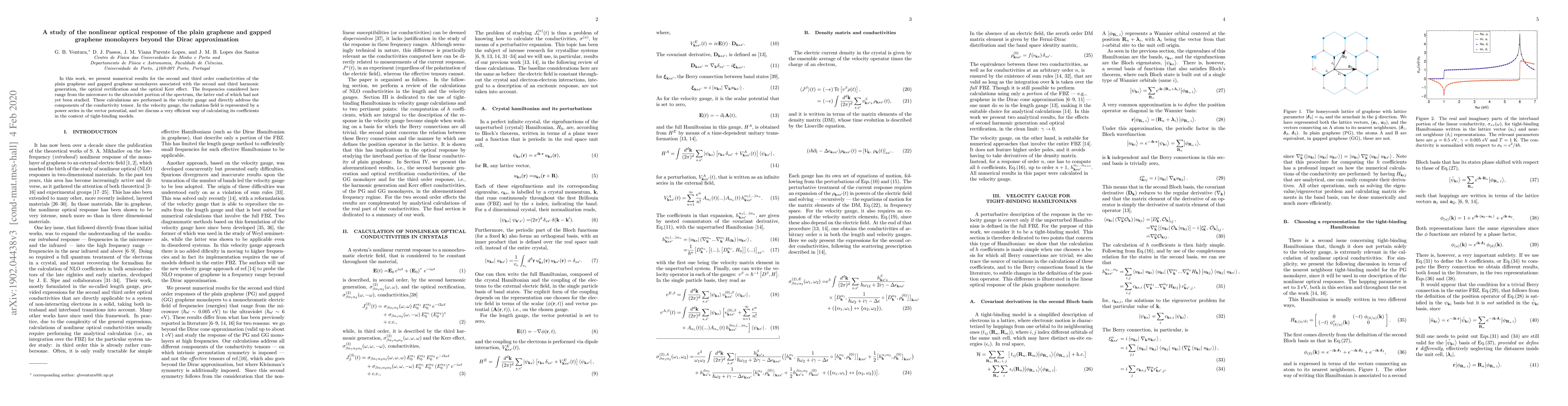 In this work, we present numerical results for the second and third order conductivities of the plain graphene and gapped graphene monolayers associated with the second and third harmonic generation, the optical rectification and the optical Kerr effect. The frequencies considered here range from the microwave to the ultraviolet portion of the spectrum, the latter end of which had not yet been studied. These calculations are performed in the velocity gauge and directly address the components of the conductivity tensor. In the velocity gauge, the radiation field is represented by a power series in the vector potential, and we discuss a very efficient way of calculating its coefficients in the context of tight-binding models.