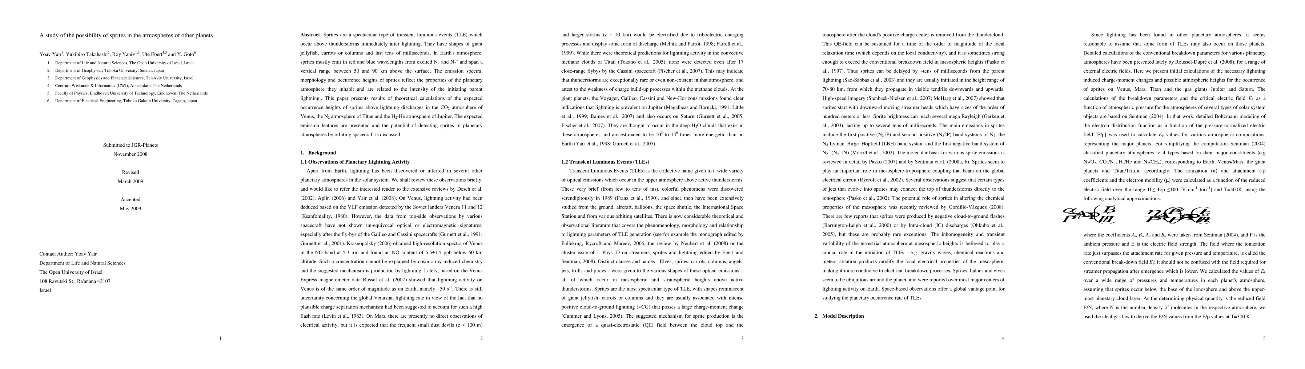 This paper investigates the potential for sprites, transient luminous events in Earth's atmosphere, to occur on other planets, specifically Venus, Titan, and Jupiter. Theoretical calculations predict the occurrence heights and emission features of sprites in these different planetary atmospheres, highlighting the possibility of detecting them via orbiting spacecraft.