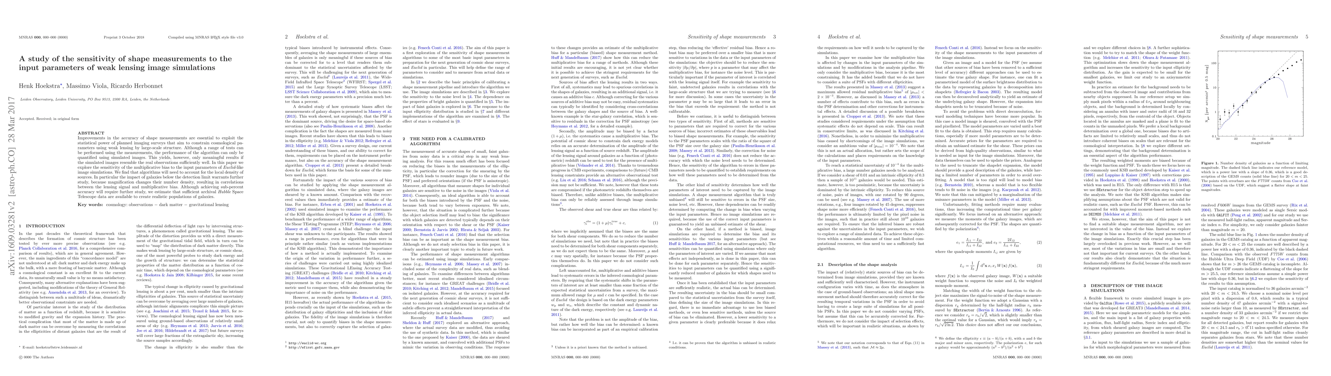 Improvements in the accuracy of shape measurements are essential to exploit the statistical power of planned imaging surveys that aim to constrain cosmological parameters using weak lensing by large-scale structure. Although a range of tests can be performed using the measurements, the performance of the algorithm can only be quantified using simulated images. This yields, however, only meaningful results if the simulated images resemble the real observations sufficiently well. In this paper we explore the sensitivity of the multiplicative bias to the input parameters of Euclid-like image simulations.We find that algorithms will need to account for the local density of sources. In particular the impact of galaxies below the detection limit warrants further study, because magnification changes their number density, resulting in correlations between the lensing signal and multiplicative bias. Although achieving sub-percent accuracy will require further study, we estimate that sufficient archival Hubble Space Telescope data are available to create realistic populations of galaxies.