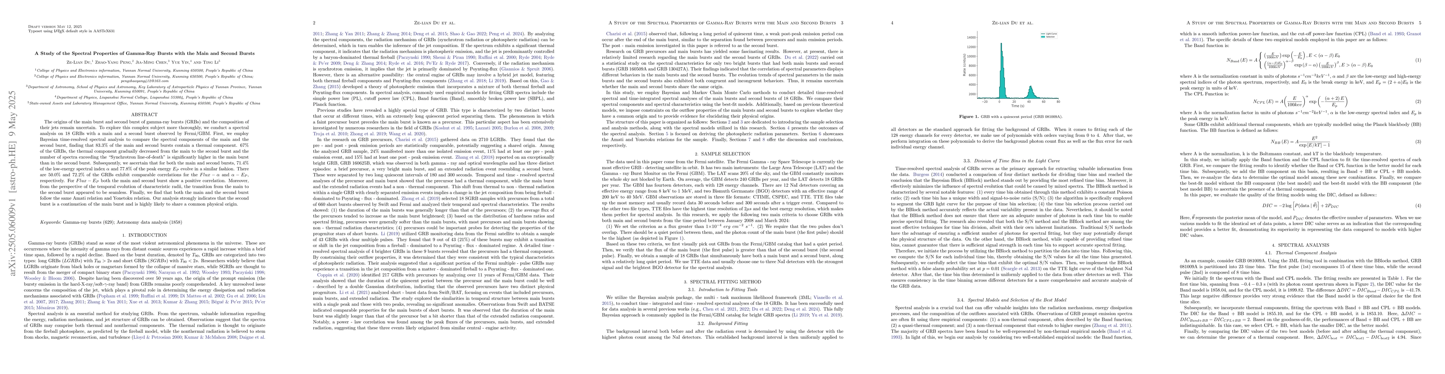 This study is novel in its comprehensive spectral analysis of both main and second bursts in GRBs, providing strong evidence for their common origin.
