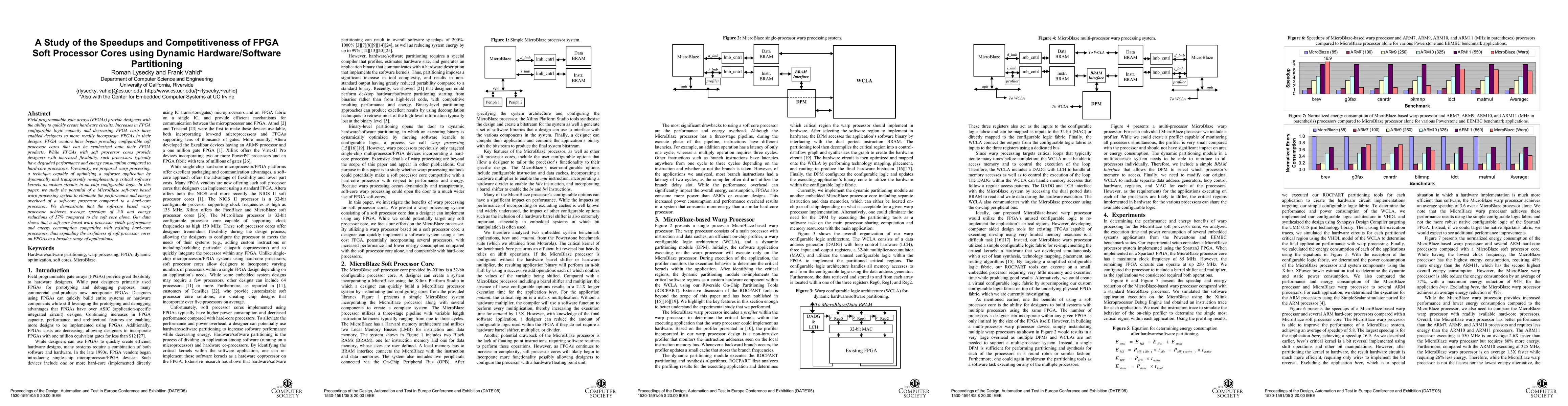 This paper investigates the use of warp processing to enhance the performance and energy efficiency of FPGA soft processor cores, achieving average speedups of 5.8x and energy reductions of 57% compared to the soft core alone, demonstrating competitive performance with hard-core processors.