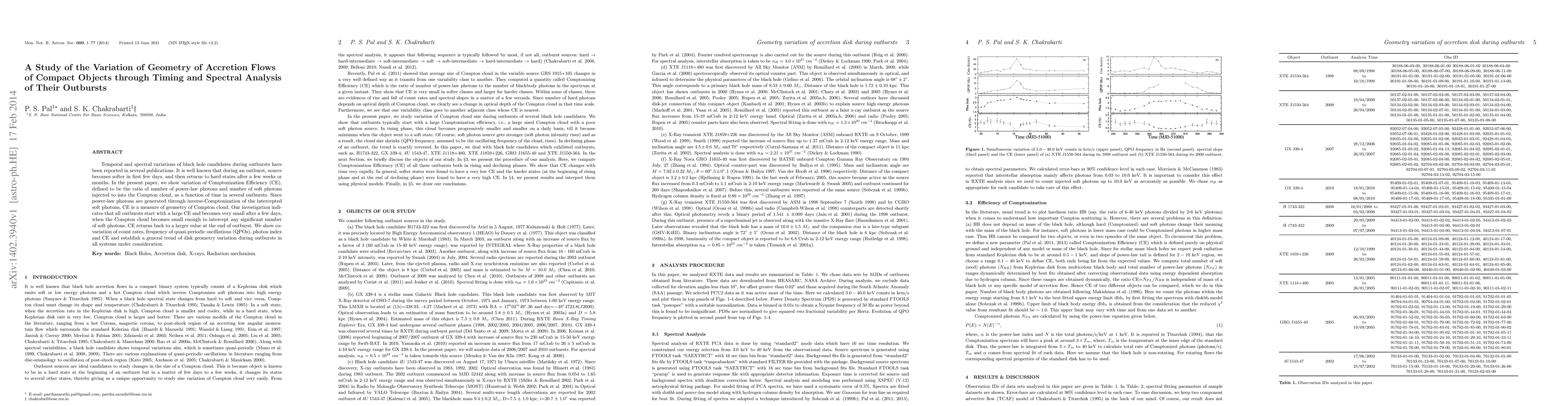 Temporal and spectral variations of black hole candidates during outbursts have been reported in several publications. It is well known that during an outburst, source becomes softer in first few days, and then returns to hard states after a few weeks or months. In the present paper, we show variation of Comptonization Efficiency (CE), defined to be the ratio of number of power-law photons and number of soft photons injected to into the Compton cloud, as a function of time in several outbursts. Since power-law photons are generated through inverse-Comptonization of the intercepted soft photons, CE is a measure of geometry of Compton cloud. Our investigation indicates that all outbursts start with a large CE and becomes very small after a few days, when the Compton cloud becomes small enough to intercept any significant number of soft photons. CE returns back to a larger value at the end of outburst. We show co-variation of count rates, frequency of quasi-periodic oscillations (QPOs), photon index and CE and establish a general trend of disk geometry variation during outbursts in all systems under consideration.a