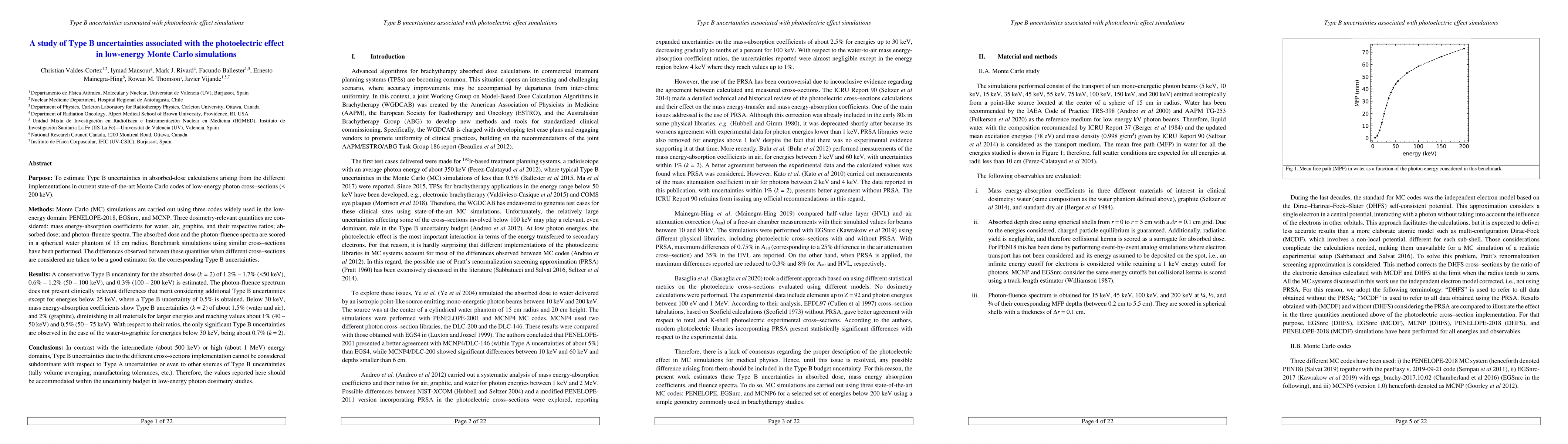 The goal of this manuscript is to estimate Type B uncertainties in absorbed-dose calculations arising from the different implementations in current state-of-the-art Monte Carlo codes of low-energy photon cross-sections (<200 keV). Monte Carlo simulations are carried out using three codes widely used in the low-energy domain: PENELOPE-2018, EGSnrc, and MCNP. Mass energy-absorption coefficients for water, air, graphite, and their respective ratios; absorbed dose; and photon-fluence spectra are considered. Benchmark simulations using similar cross-sections have been performed. The differences observed between these quantities when different cross-sections are considered are taken to be a good estimator for the corresponding Type B uncertainties. A conservative Type B uncertainty for the absorbed dose (k=2) of 1.2%-1.7% (<50 keV), 0.6%-1.2% (50-100 keV), and 0.3% (100-200 keV) is estimated. The photon-fluence spectrum does not present clinically relevant differences that merit considering additional Type B uncertainties except for energies below 25 keV, where a Type B uncertainty of 0.5% is obtained. Below 30 keV, mass energy-absorption coefficients show Type B uncertainties (k=2) of about 1.5% (water and air), and 2% (graphite), reaching values about 1% (40-50 keV) and 0.5% (50-75 keV). Type B uncertainties for the water-to-graphite ratios are observed for energies below 30 keV, about 0.7% (k=2). In contrast with the intermediate (about 500 keV) or high (about 1 MeV) energy domains, Type B uncertainties due to the different cross-sections implementation cannot be considered subdominant with respect to Type A uncertainties or even to other sources of Type B uncertainties. Therefore, the values reported here should be accommodated within the uncertainty budget in low-energy photon dosimetry studies.