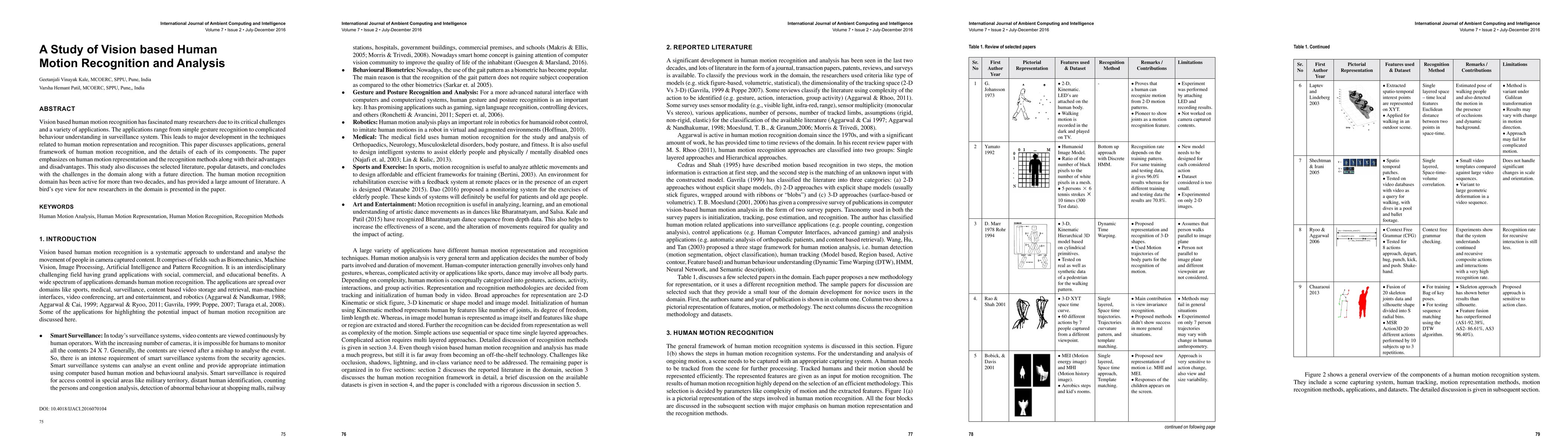 This study examines vision-based human motion recognition and analysis, exploring its applications, framework, and challenges, providing a comprehensive overview for new researchers in the field.