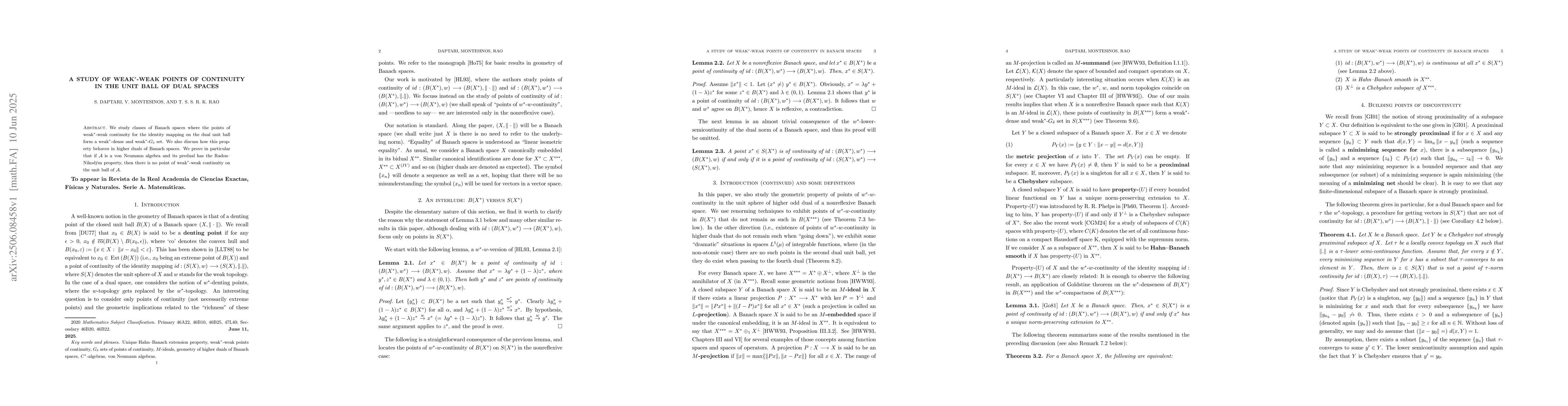 Researchers studied points of weak$^*$-weak continuity on the unit ball of dual spaces, finding that if a von Neumann algebra's predual has the Radon--Nikodšym property, there are no such points.