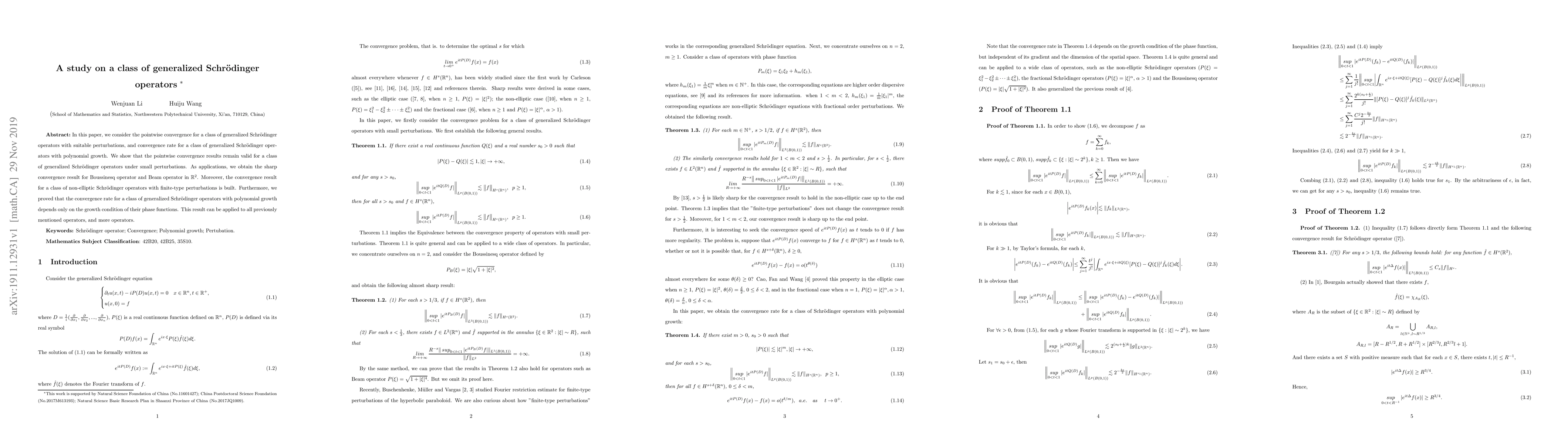 In this paper, we consider the pointwise convergence for a class of generalized Schr\"{o}dinger operators with suitable perturbations, and convergence rate for a class of generalized Schr\"{o}dinger operators with polynomial growth. We show that the pointwise convergence results remain valid for a class of generalized Schr\"{o}dinger operators under small perturbations. As applications, we obtain the sharp convergence result for Boussinesq operator and Beam operator in $\mathbb{R}^2$. Moreover, the convergence result for a class of non-elliptic Schr\"{o}dinger operators with finite-type perturbations is built. Furthermore, we proved that the convergence rate for a class of generalized Schr\"{o}dinger operators with polynomial growth depends only on the growth condition of their phase functions. This result can be applied to all previously mentioned operators, and more operators.