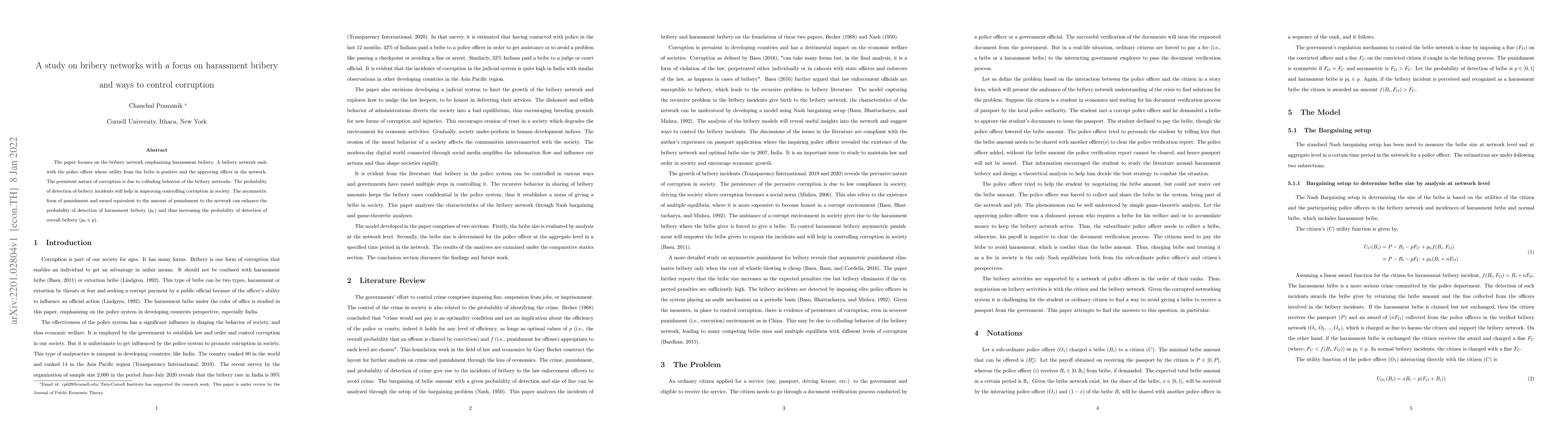 This study investigates bribery networks, particularly focusing on harassment bribery, and proposes that asymmetric punishment and rewards can enhance detection probabilities, thereby controlling corruption. The persistent corruption is attributed to the collusion within bribery networks, and improved detection mechanisms can mitigate these issues.