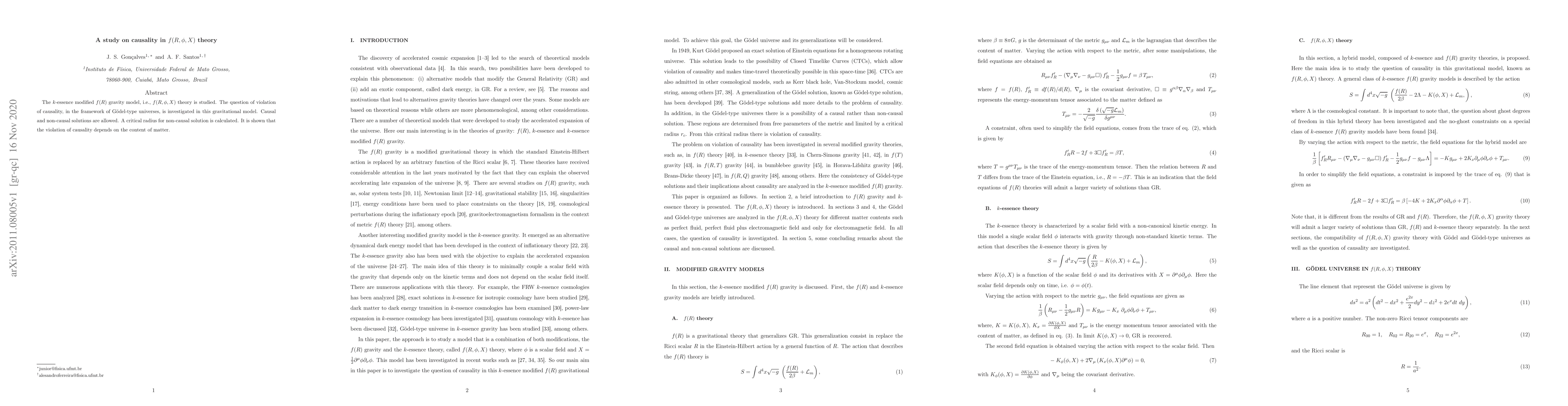This study investigates the $f(R,\phi,X)$ theory, a modified $k$-essence model of gravity, focusing on the violation of causality within Gödel-type universes. It identifies a critical radius for non-causal solutions and demonstrates that causality violation is contingent on the matter content.