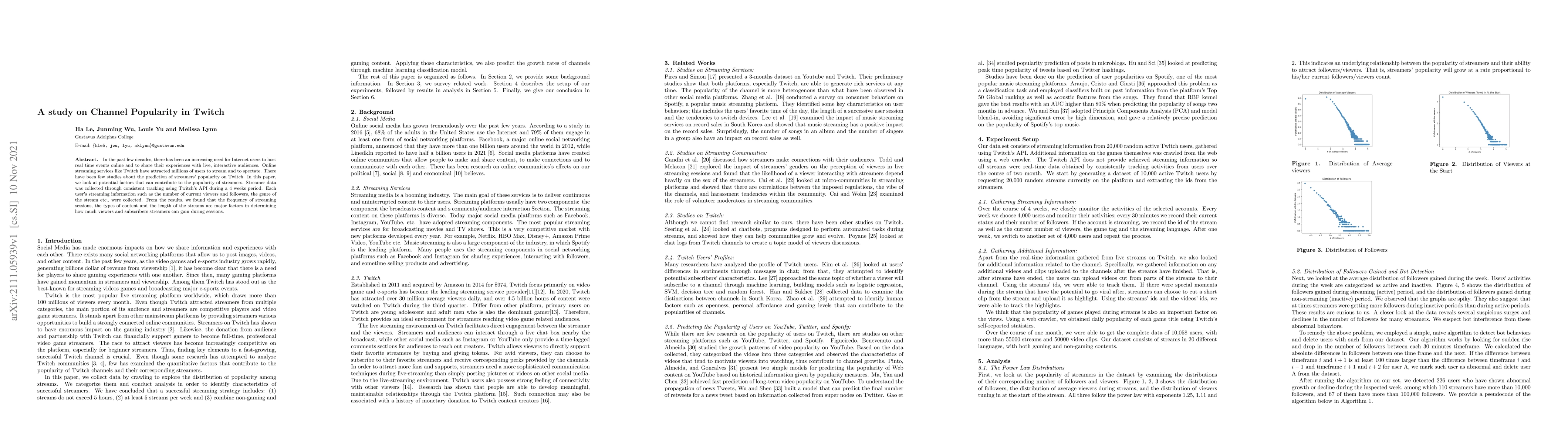 This study investigates factors influencing streamer popularity on Twitch, analyzing data collected over four weeks via Twitch's API. Key findings indicate that the frequency of streaming sessions, content type, and stream length significantly impact viewer and subscriber growth.