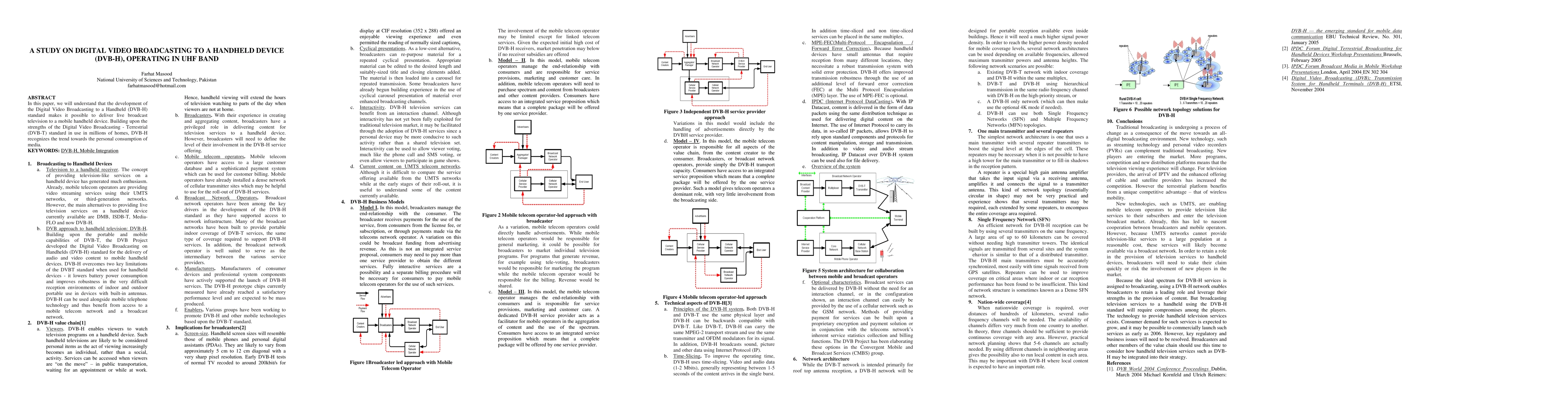 This paper explores the DVB-H standard, which extends the DVB-T terrestrial broadcasting technology to deliver live TV to handheld devices, leveraging the growing trend of personal media consumption.