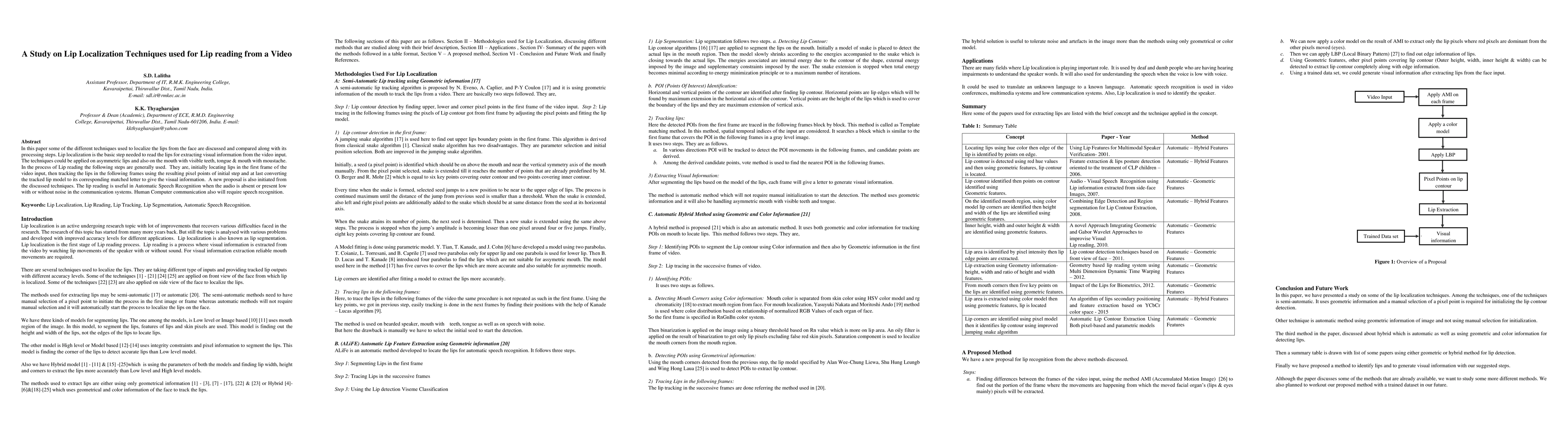 In this paper some of the different techniques used to localize the lips from the face are discussed and compared along with its processing steps. Lip localization is the basic step needed to read the lips for extracting visual information from the video input. The techniques could be applied on asymmetric lips and also on the mouth with visible teeth, tongue & mouth with moustache. In the process of Lip reading the following steps are generally used. They are, initially locating lips in the first frame of the video input, then tracking the lips in the following frames using the resulting pixel points of initial step and at last converting the tracked lip model to its corresponding matched letter to give the visual information. A new proposal is also initiated from the discussed techniques. The lip reading is useful in Automatic Speech Recognition when the audio is absent or present low with or without noise in the communication systems. Human Computer communication also will require speech recognition.