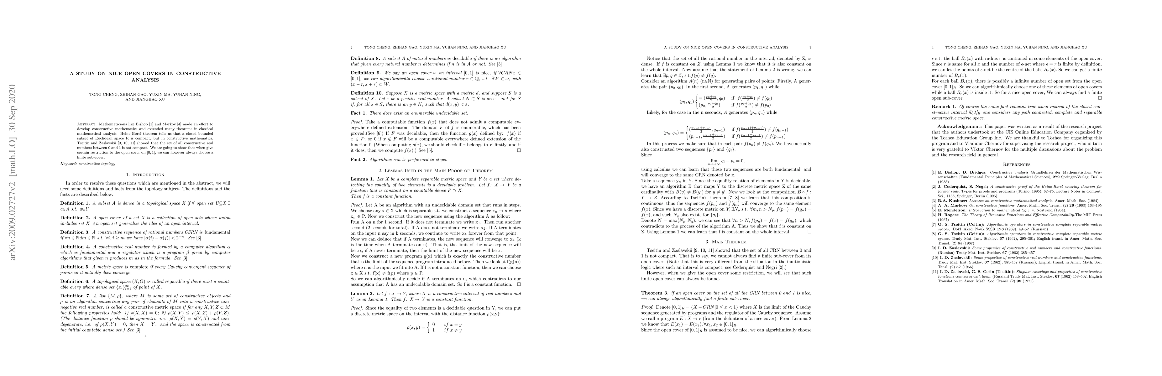 Mathematicians like Markov and Bishop made an effort to develop constructive mathematics and extended many theorems in classical mathematical analysis. Heine Borel theorem tells us that a closed bounded subset of Euclidean space R is compact, but in constructive mathematics, Tseitin and Zaslavskii showed that the set of all constructive real numbers between 0 and 1 is not compact. We are going to show that when giving certain restriction to the open cover on [0,1], we can however always choose a finite sub-cover.