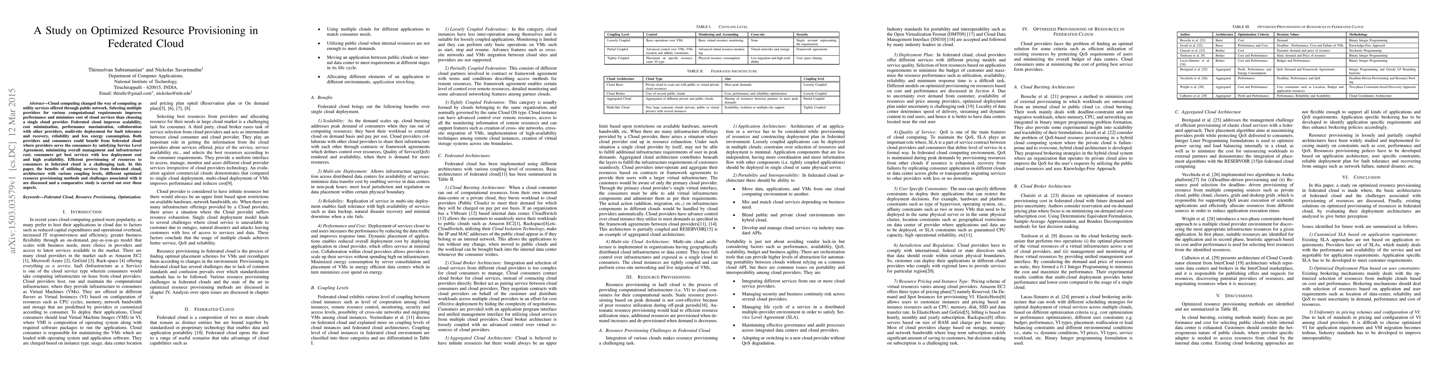 This paper explores optimized resource provisioning in federated cloud environments, highlighting benefits such as improved scalability, cost minimization, and performance. It discusses various provisioning methods and challenges, and conducts a comparative study on different coupling levels and resource allocation strategies.