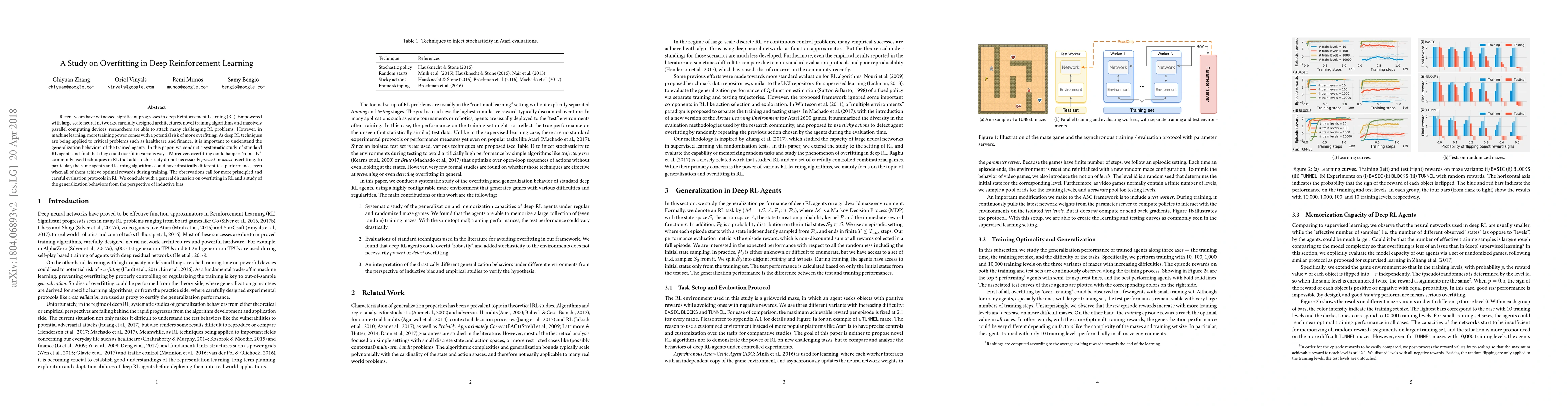This paper investigates overfitting in deep reinforcement learning (RL), finding that despite optimal training rewards, RL agents can overfit and exhibit poor generalization. It highlights the limitations of current techniques to prevent or detect overfitting and calls for more rigorous evaluation protocols in RL research.