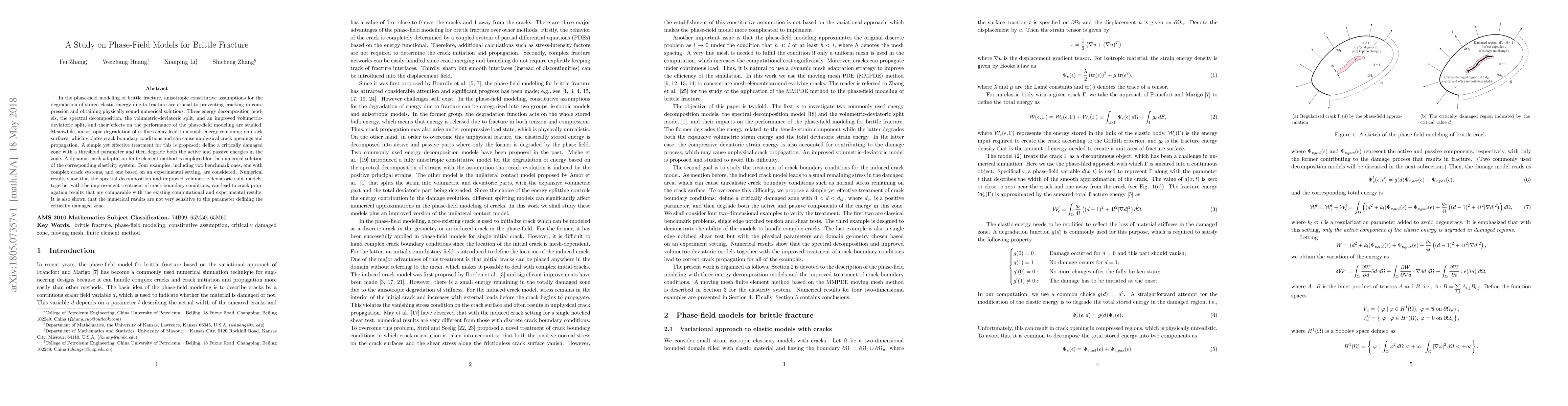 This study investigates the phase-field modeling of brittle fracture, focusing on anisotropic energy degradation models to prevent cracking in compression. It proposes an improved treatment for crack boundary conditions and demonstrates that the spectral decomposition and improved volumetric-deviatoric split models yield results comparable to existing computational and experimental data.