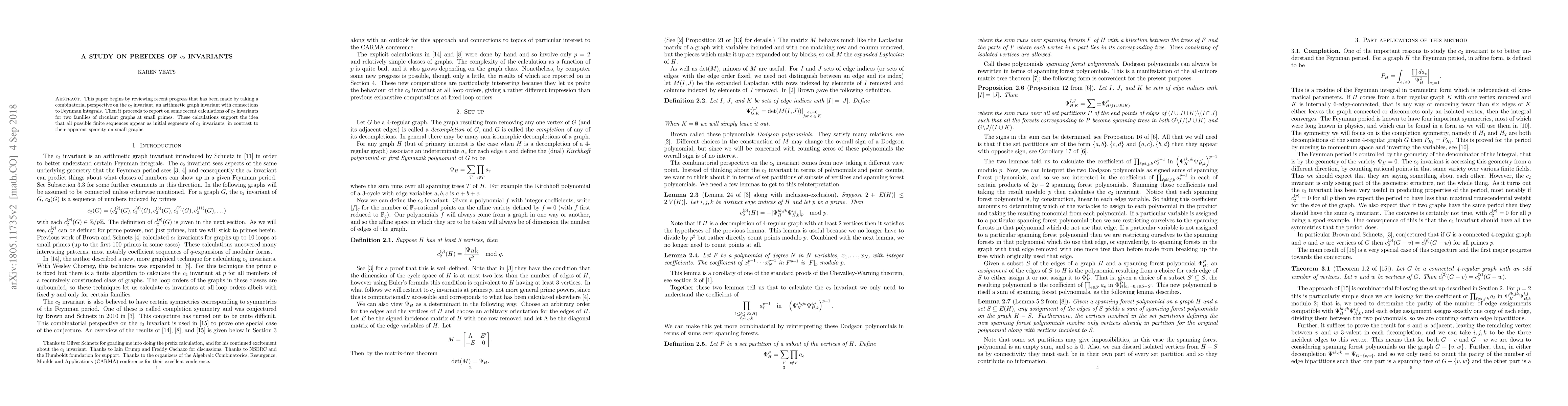 This document begins by reviewing recent progress that has been made by taking a combinatorial perspective on the $c_2$ invariant, an arithmetic graph invariant with connections to Feynman integrals. Then it proceeds to report on some recent calculations of $c_2$ invariants for two families of circulant graphs at small primes. These calculations support the idea that all possible finite sequences appear as initial segments of $c_2$ invariants, in contrast to their apparent sparsity on small graphs.
