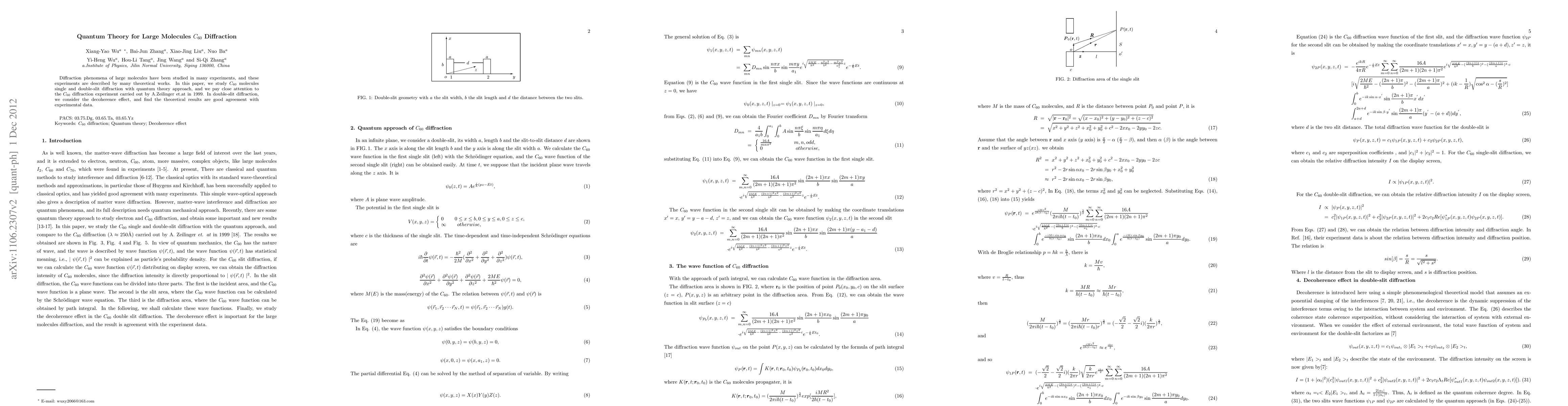 This study applies quantum mechanical theory to analyze the diffraction of $C_{60}$ molecules, focusing on single and double-slit experiments, particularly comparing theoretical outcomes with Zeilinger's 1999 experimental results. It highlights that the inclusion of decoherence effects in double-slit diffraction yields results that closely match experimental data.