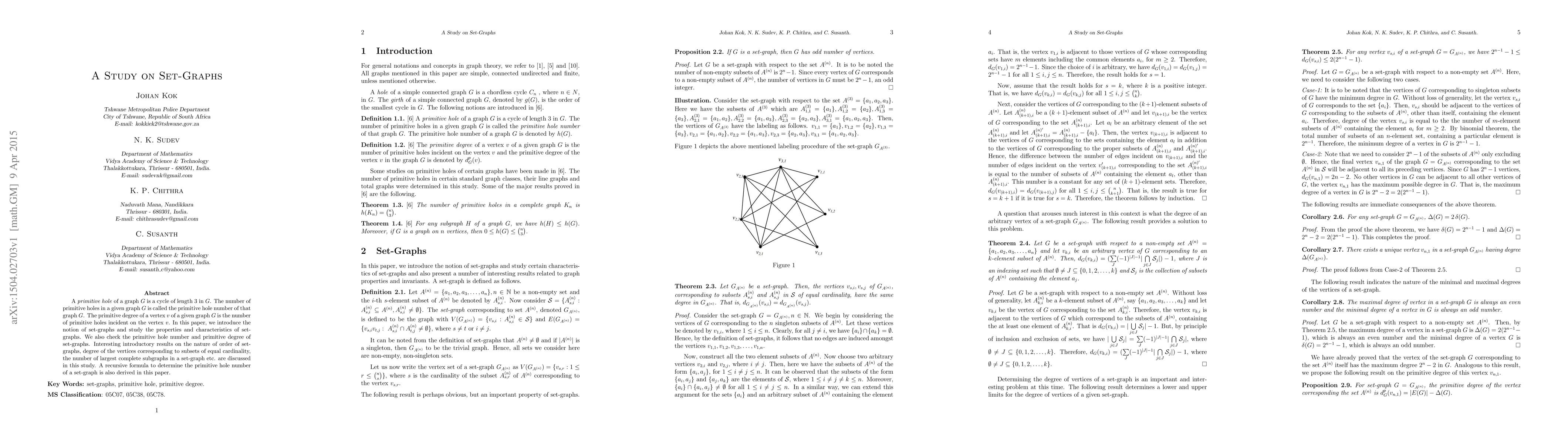 This study introduces set-graphs and investigates their properties, including primitive holes and degrees, with a focus on deriving a recursive formula for calculating the primitive hole number of a set-graph.