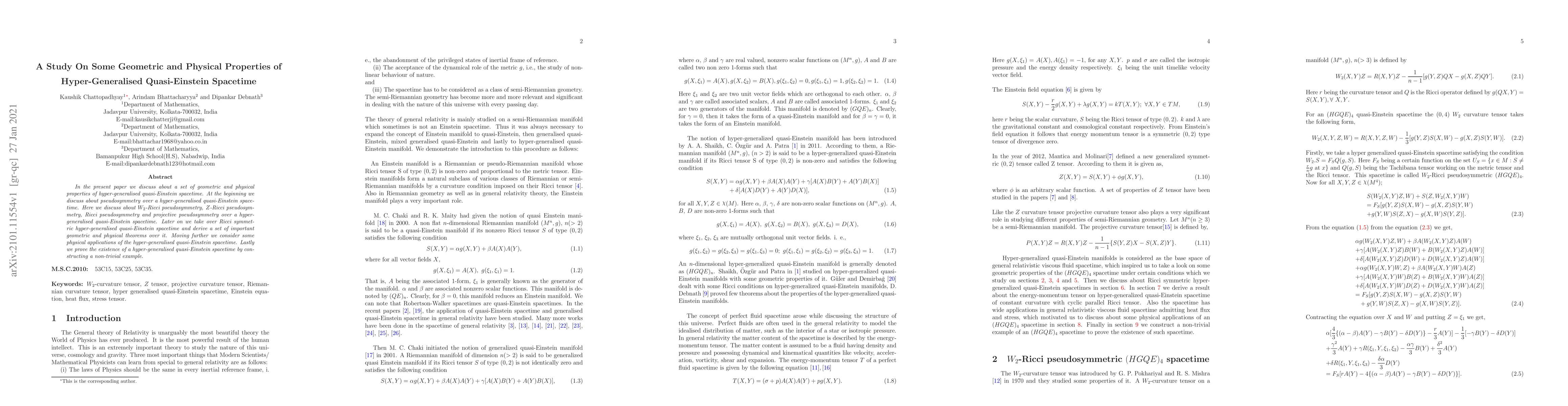 In the present paper we discuss about a set of geometric and physical properties of hyper-generalised quasi-Einstein spacetime. At the beginning we discuss about pseudosymmetry over a hyper-generalised quasi-Einstein spacetime. Here we discuss about W2-Ricci pseudosymmetry, Z-Ricci pseudosymmetry, Ricci pseudosymmetry and projective pseudosymmetry over a hyper-generalised quasi-Einstein spacetime. Later on we take over Ricci symmetric hyper-generalised quasi-Einstein spacetime and derive a set of important geometric and physical theorems over it. Moving further we consider some physical applications of the hyper-generalised quasi-Einstein spacetime. Lastly we prove the existence of a hyper-generalised quasi-Einstein spacetime by constructing a non-trivial example.