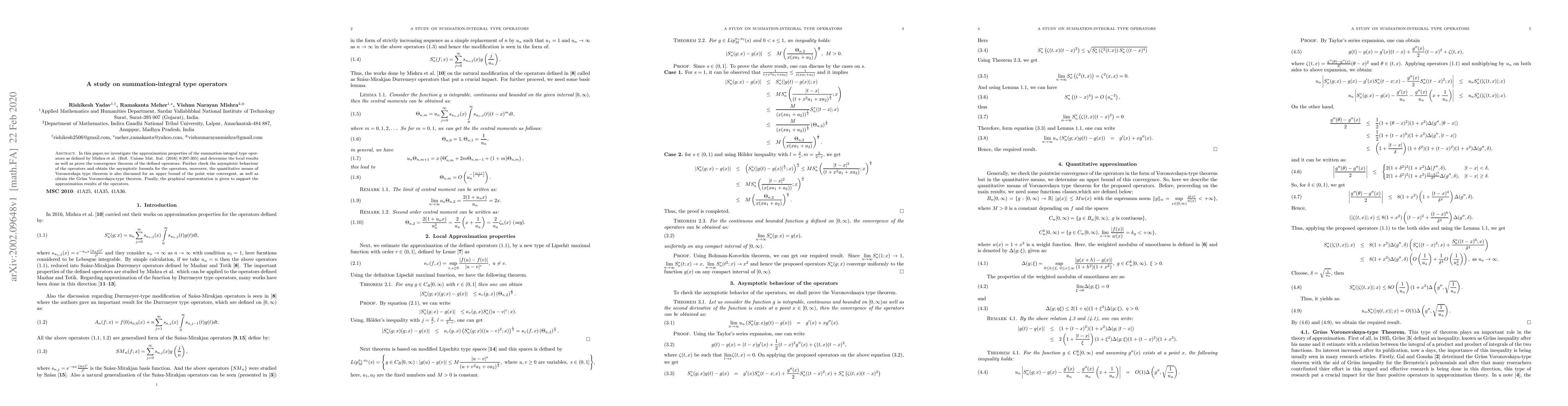 In this paper, we investigate the approximation properties of the summation-integral type operators as defined by Mishra et al. (Boll. Unione Mat. Ital. (2016) 8:297-305) and determine the local results as well as prove the convergence theorem of the defined operators. Further, check the asymptotic behavior of the operators and obtain the asymptotic formula for the operators, moreover, the quantitative means of Voronovskaja type theorem is also discussed for an upper bound of the pointwise convergent, as well as obtain the Gruss Voronovskaya-type theorem. Finally, the graphical representation is given to support the approximation results of the operators.