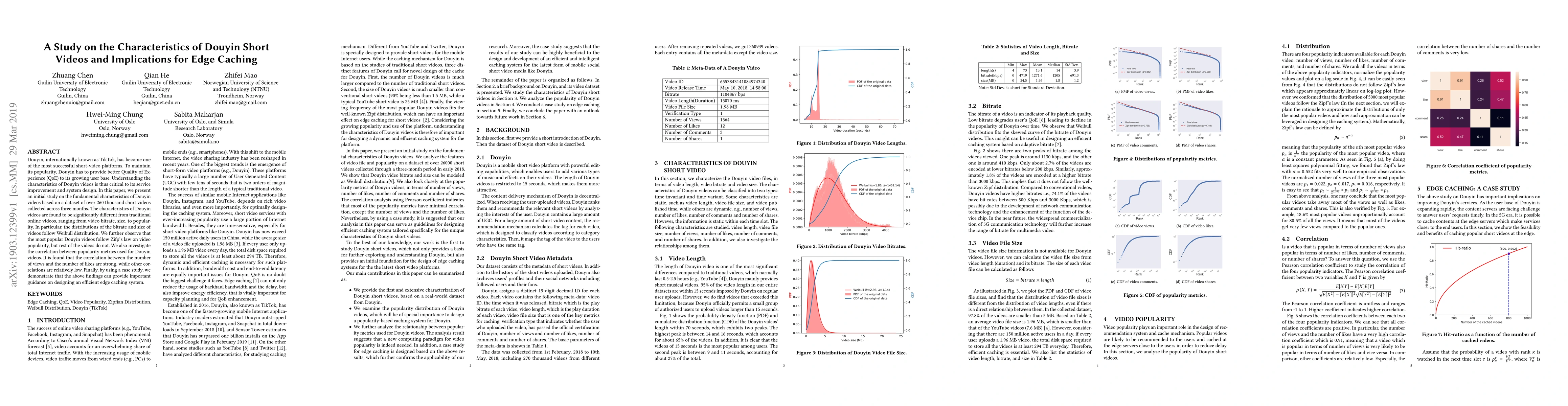 This study analyzes the unique characteristics of Douyin (TikTok) short videos, revealing significant differences from traditional online videos in terms of bitrate, size, and popularity. The findings suggest that edge caching systems can benefit from these insights to enhance user experience.