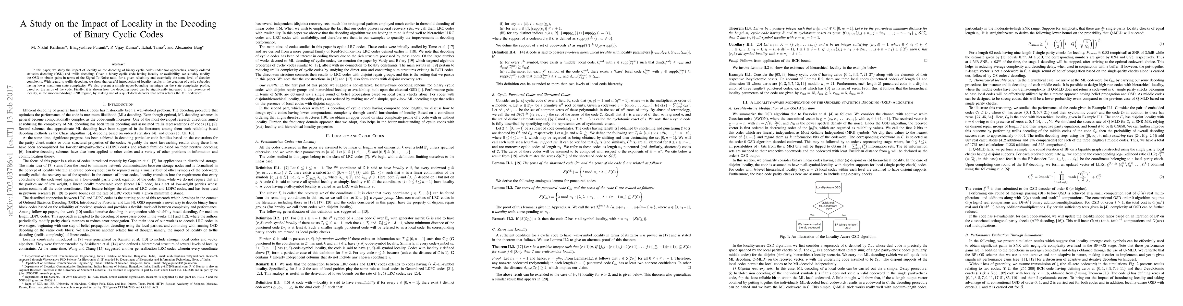 This paper investigates how locality influences the decoding of binary cyclic codes using ordered statistics decoding (OSD) and trellis decoding, achieving better Signal-To-Noise ratio and lower state complexity, while also presenting a quick-look decoder for faster decoding in moderate-to-high SNR conditions.