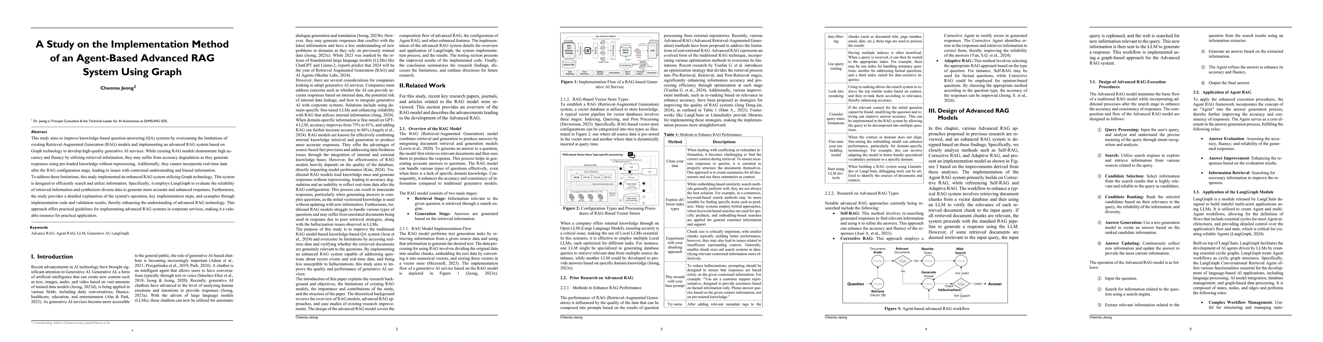 This study aims to improve knowledge-based question-answering (QA) systems by overcoming the limitations of existing Retrieval-Augmented Generation (RAG) models and implementing an advanced RAG system based on Graph technology to develop high-quality generative AI services. While existing RAG models demonstrate high accuracy and fluency by utilizing retrieved information, they may suffer from accuracy degradation as they generate responses using pre-loaded knowledge without reprocessing. Additionally, they cannot incorporate real-time data after the RAG configuration stage, leading to issues with contextual understanding and biased information. To address these limitations, this study implemented an enhanced RAG system utilizing Graph technology. This system is designed to efficiently search and utilize information. Specifically, it employs LangGraph to evaluate the reliability of retrieved information and synthesizes diverse data to generate more accurate and enhanced responses. Furthermore, the study provides a detailed explanation of the system's operation, key implementation steps, and examples through implementation code and validation results, thereby enhancing the understanding of advanced RAG technology. This approach offers practical guidelines for implementing advanced RAG systems in corporate services, making it a valuable resource for practical application.